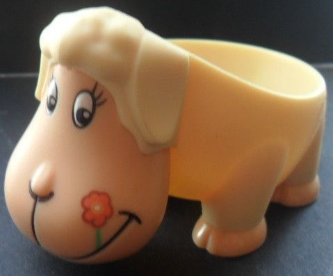 Eierbecher Schaf Weiß mit Rosa Blume im Mund