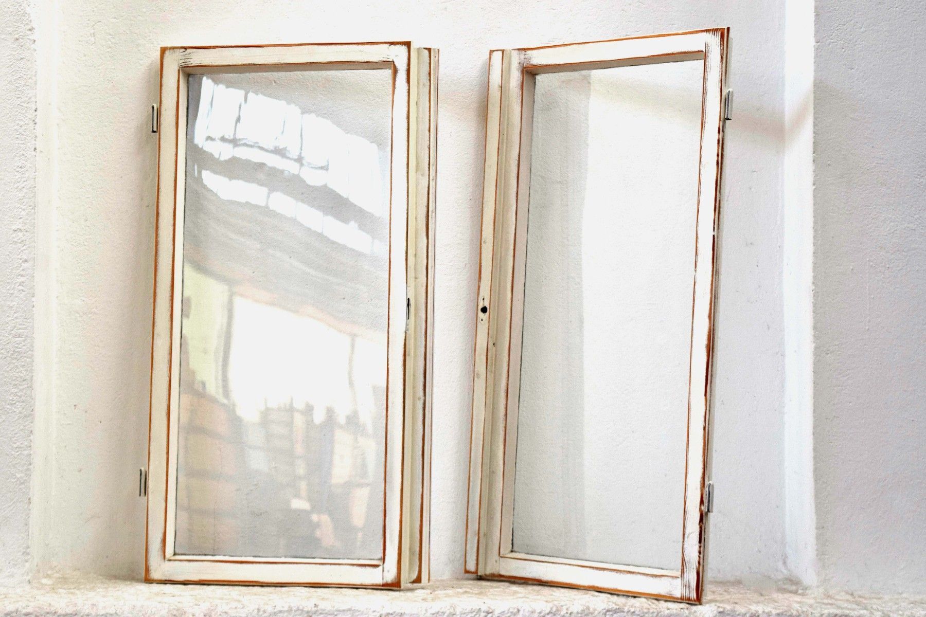 ein Paar Holzfenster Antik Alt Vintage Shabby Weiß Groß Landhaus Weiß Fensterflügel