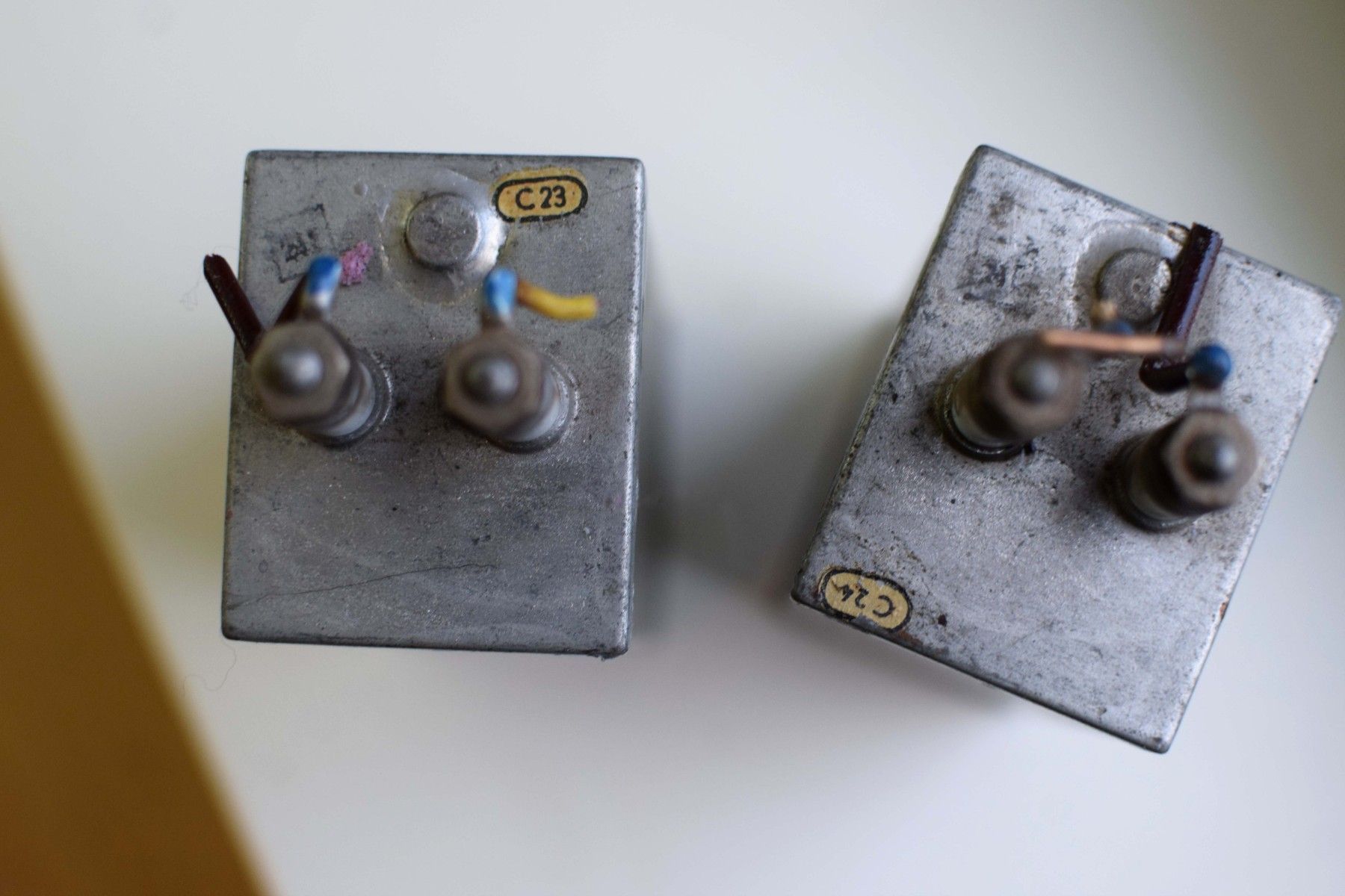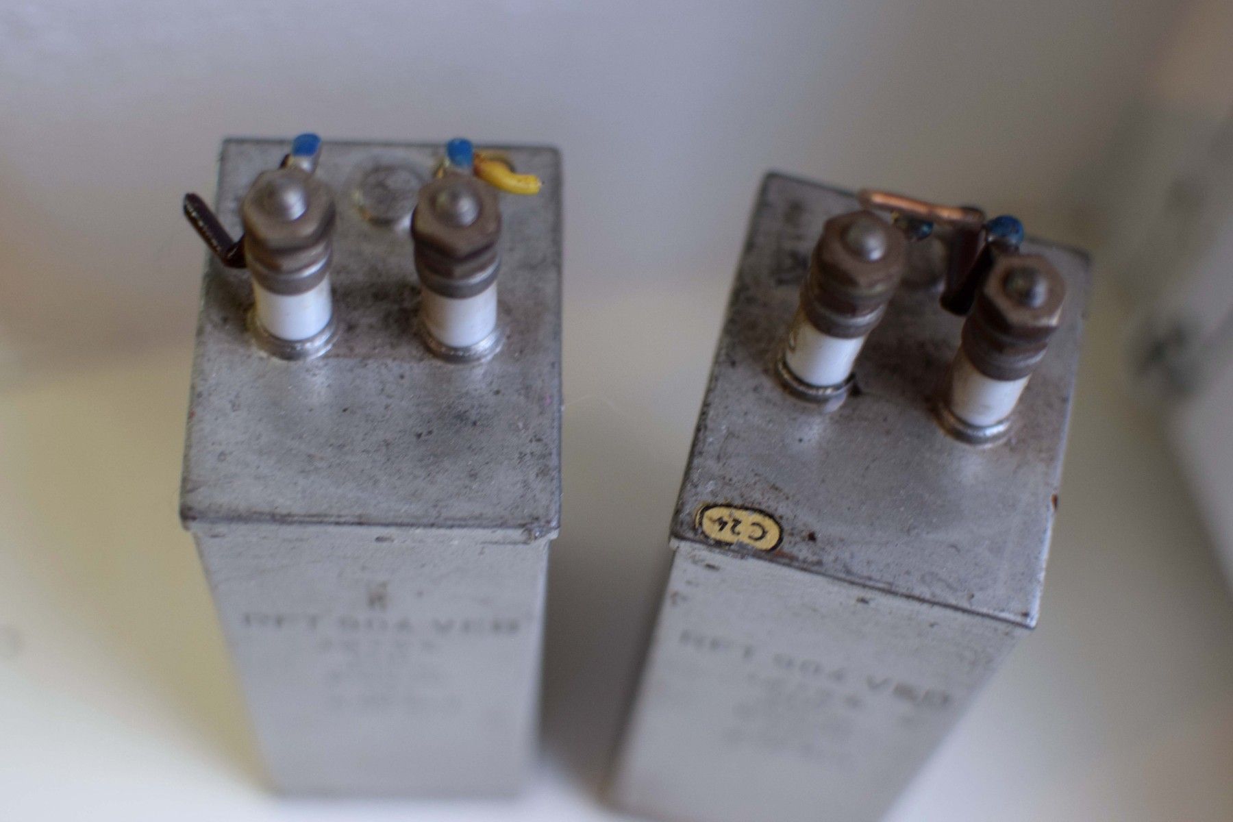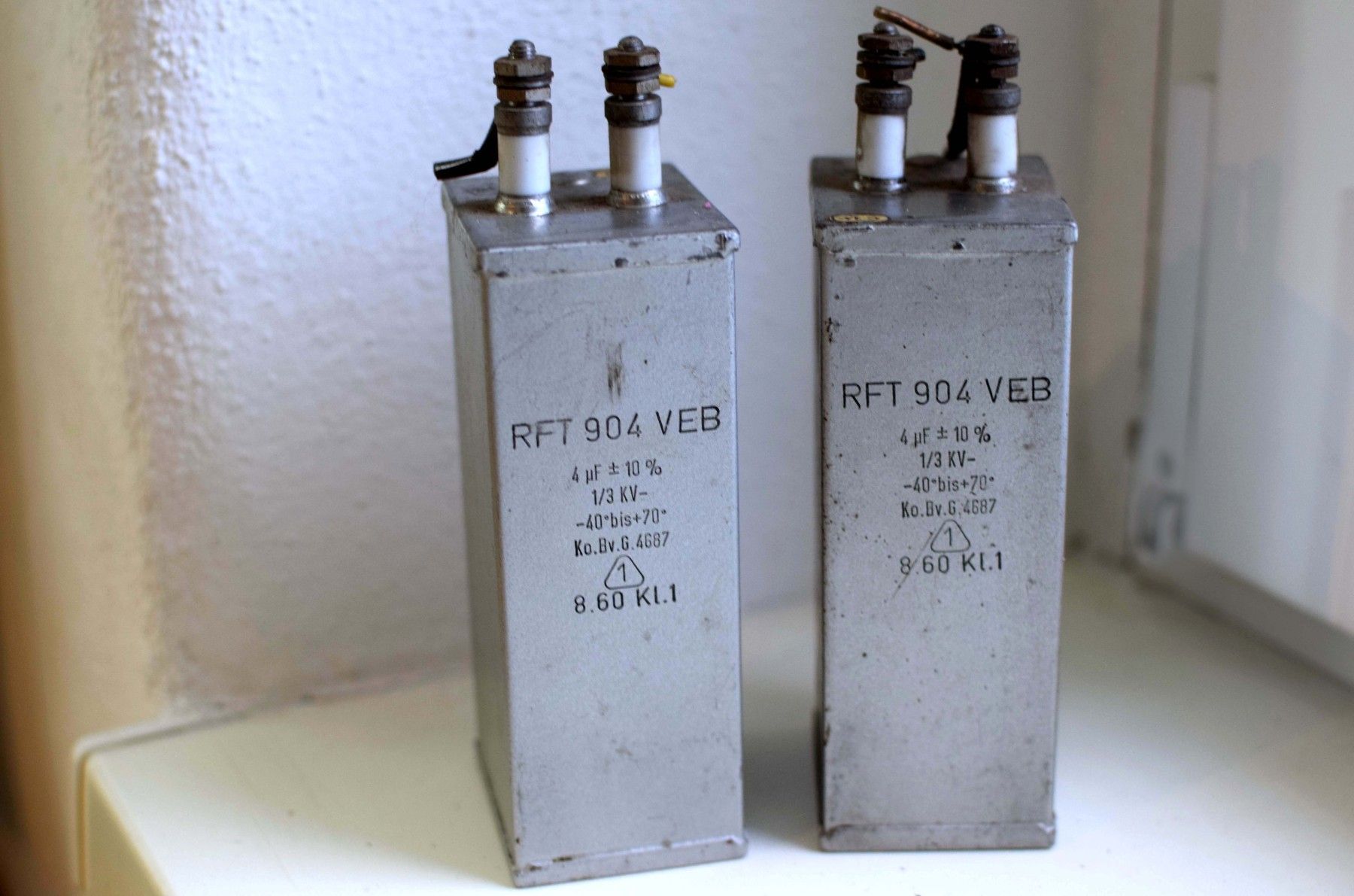 ein Paar (zwei Stück): Kondensator: MP RFT 904 VEB 4 uF 10% 1/3KV -40 bis +70 Ko.Bv.G 4687 aus der DDR mit Gebrauchsspuren, funktionsfähig Leistungsdetails, bitte den Fotos entnehmen Der Versand innerhalb Deutschlands ist kostenfrei und erfolgt per DHL Paket. Verkauf als Paar, Lieferumfang wie abgebildet.