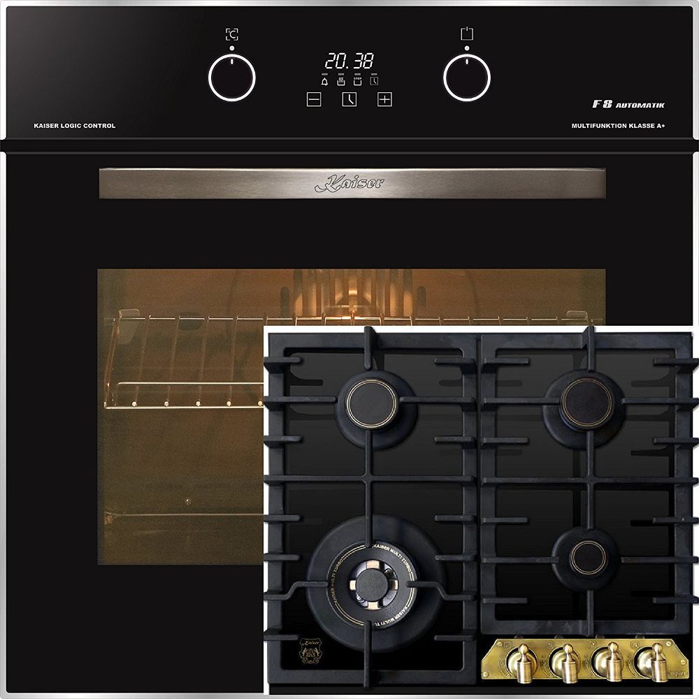 Einbau Backofen 67L mit Selbstreinigung + Glaskeramik Gaskochfeld 60cm Kaiser