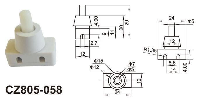 Einbau Druckschalter für Lampen 250V 10A