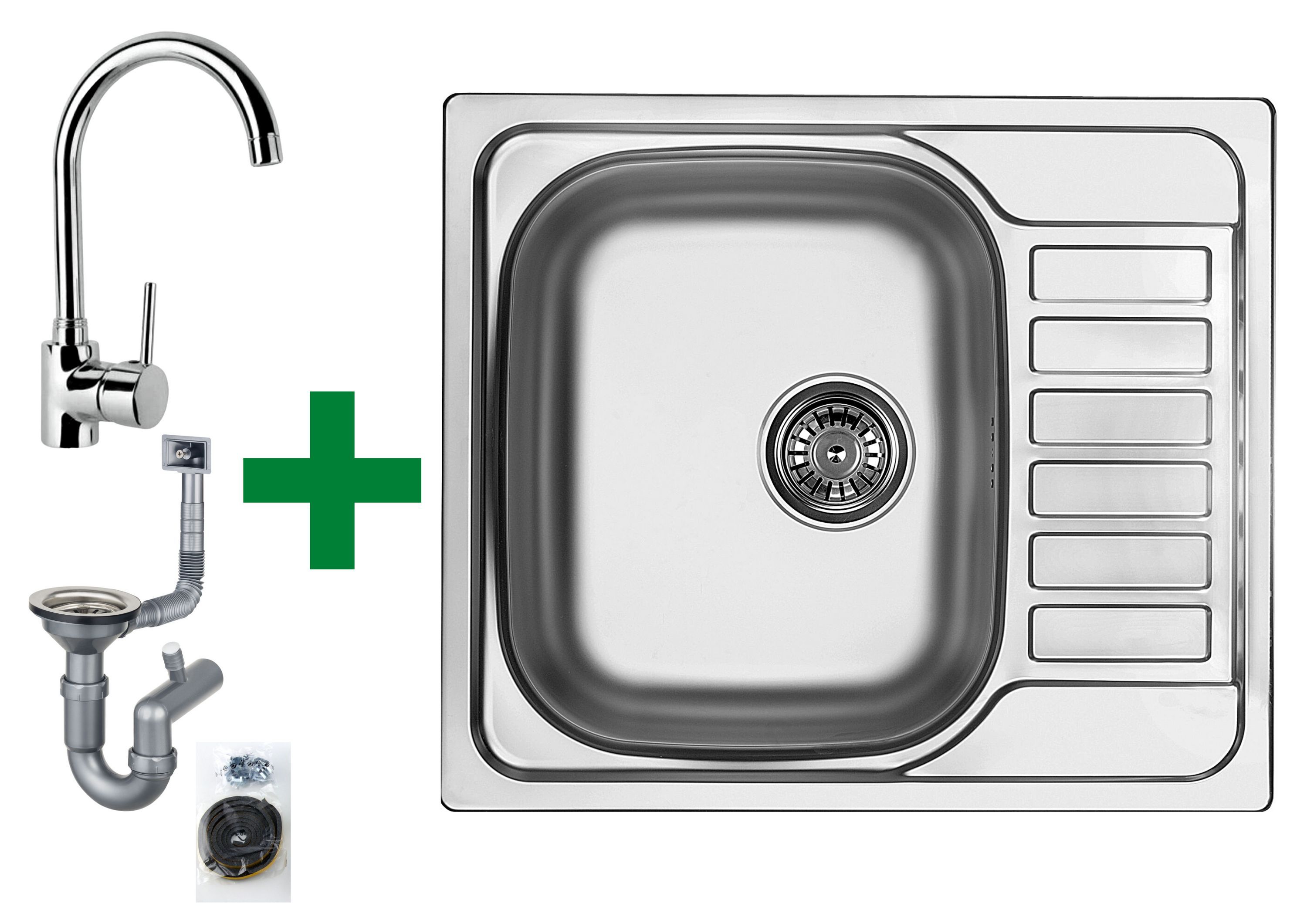 Einbau Edelstahlspüle 60x50,5 cm + Armatur & Siphon