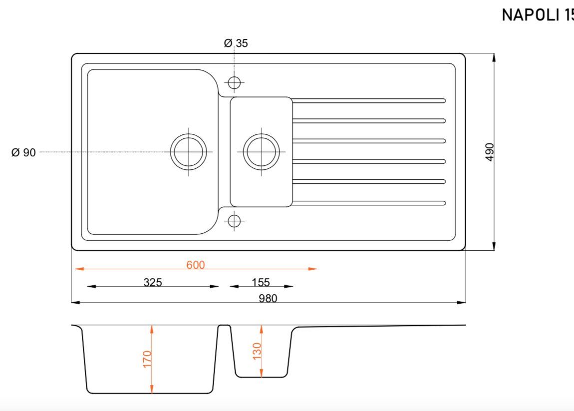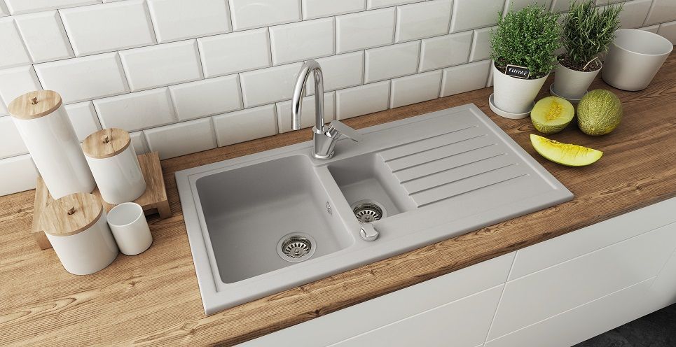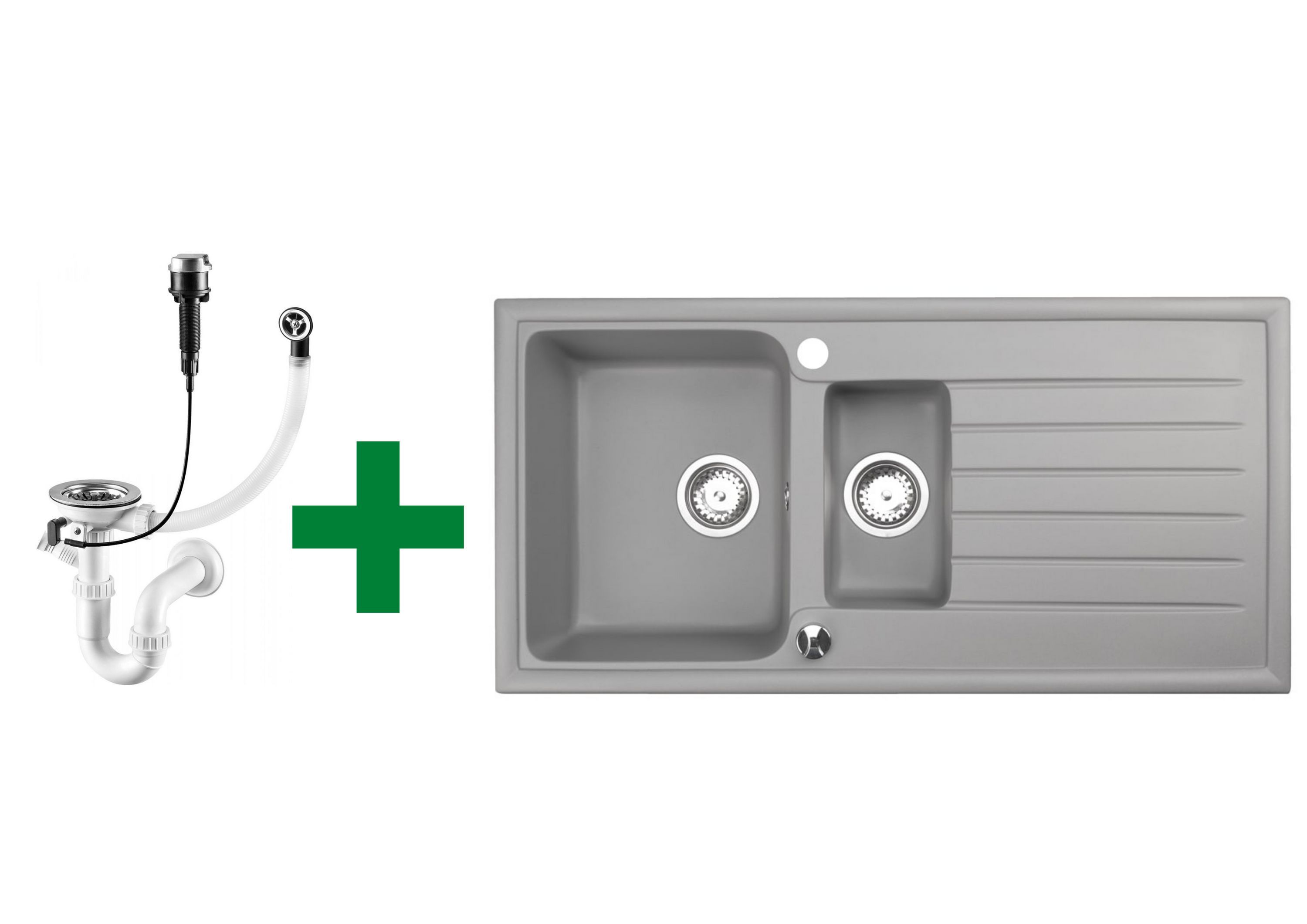 Einbau Granitspüle Grau 100x50 – Doppelbecken mit Abtropf + Zubehör