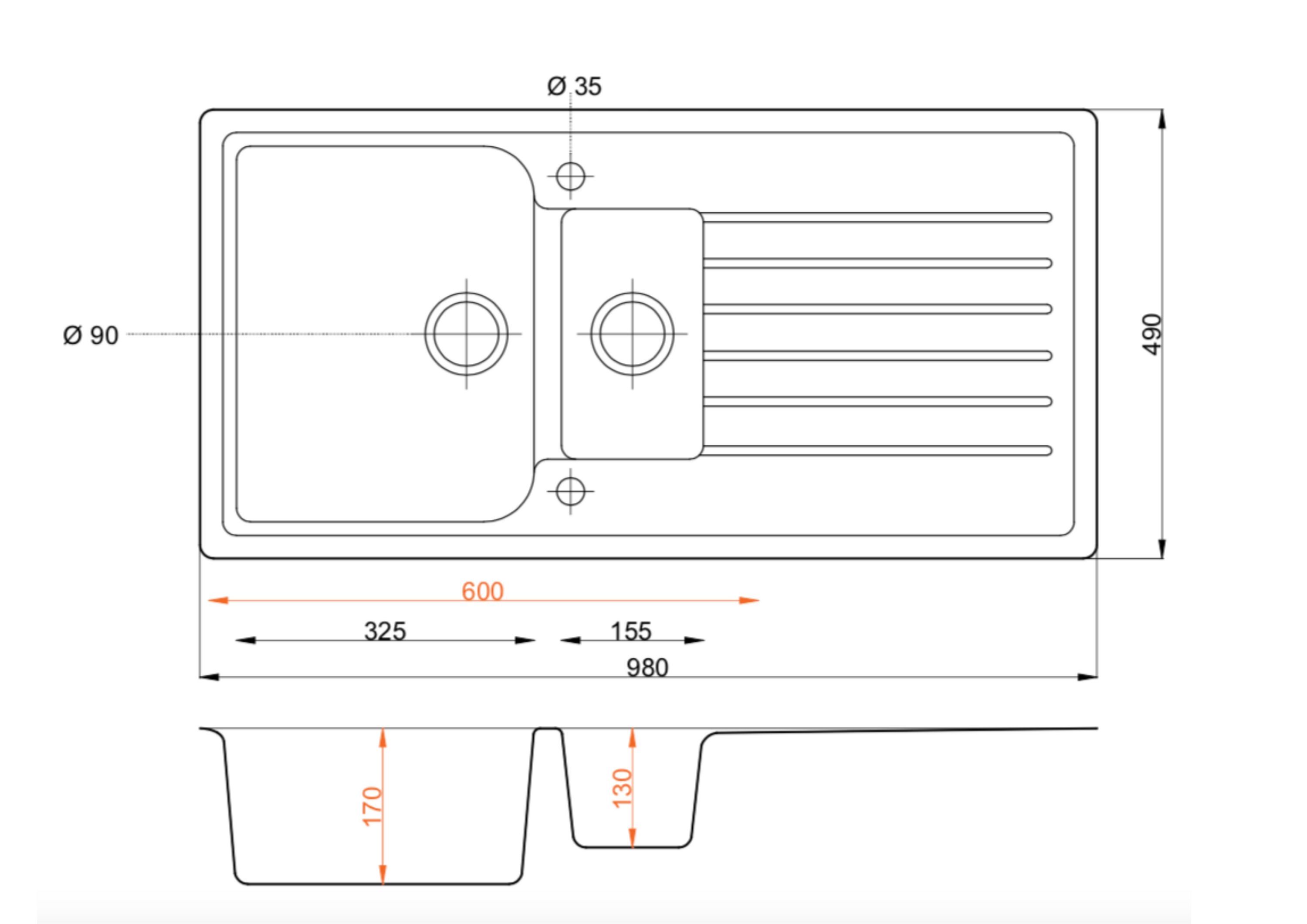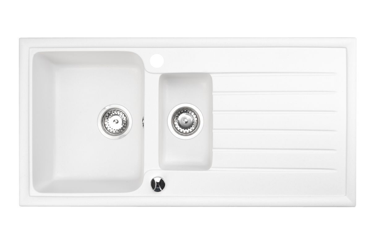 Einbau Granitspüle Weiß 100x50 – Doppelbecken mit Abtropf & Zubehör