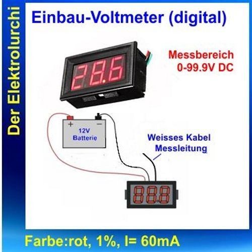 Einbau LED-Digitalvoltmeter, 3-stellig 0-99.9V/ DC rot, 1%, Voltmeter, Spannung 1St.