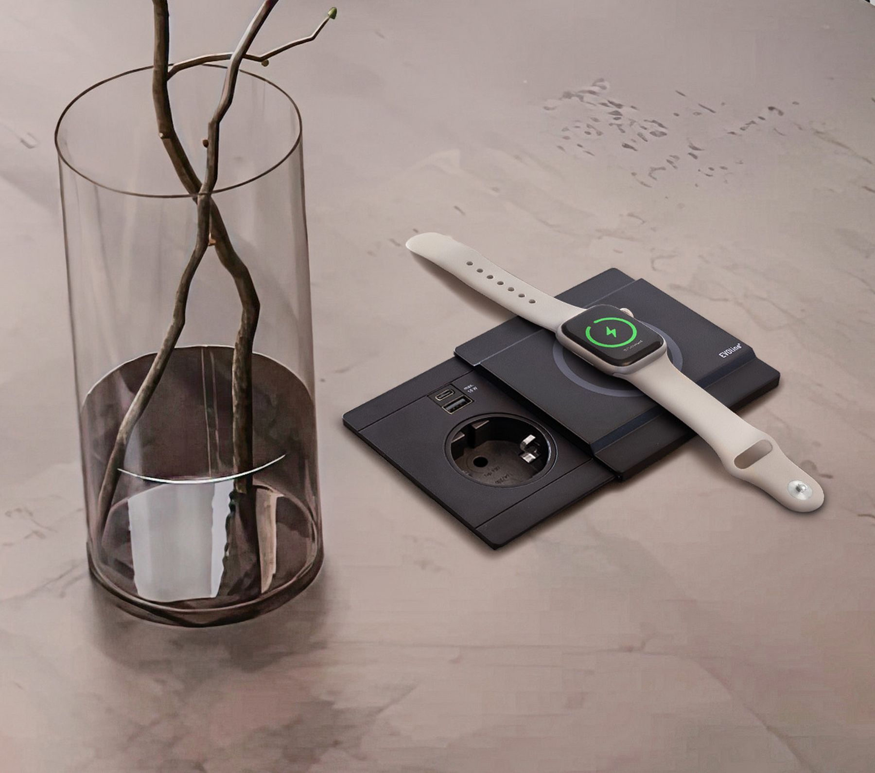 Einbausteckdose Circle80 DISQ Küchensteckdose Qi-Ladestation kabellos USB A/C