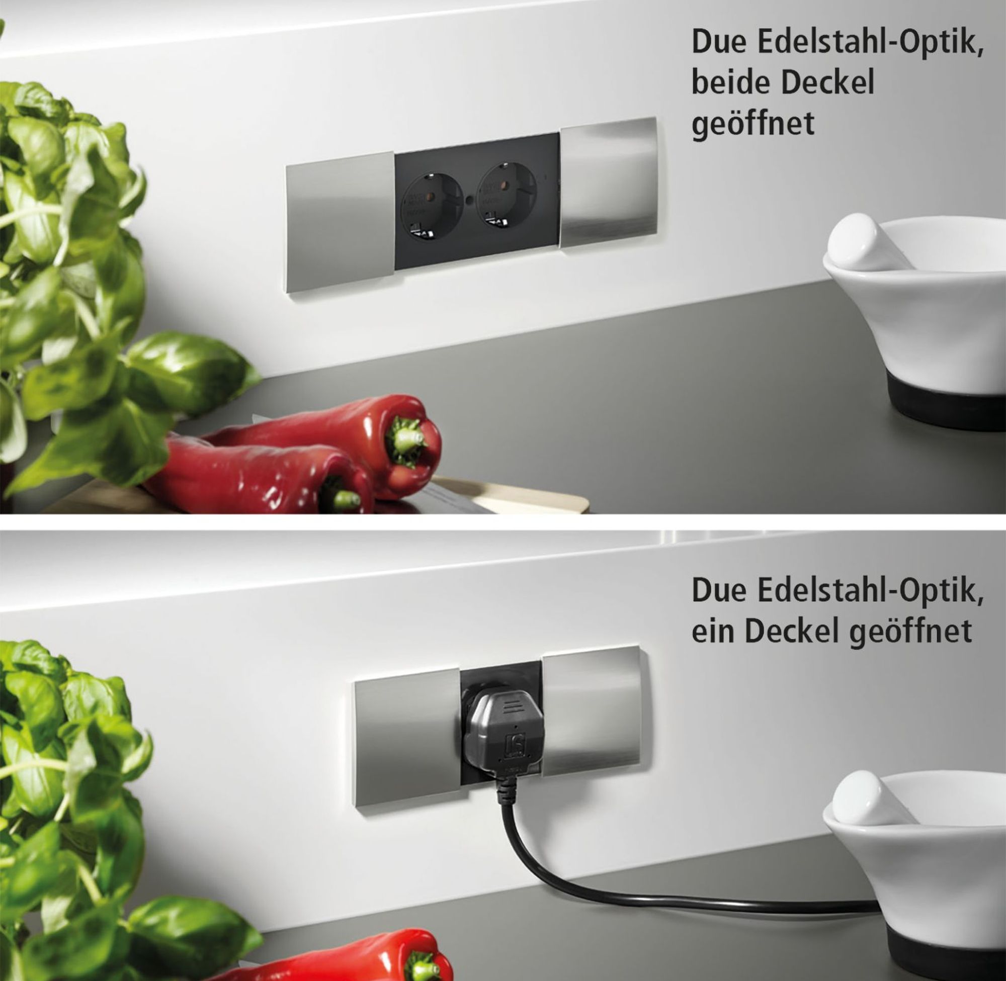 • Einbausteckdose Due 2x Schuko Küchensteckdose Typ F Arbeitsplatte Bürosteckdose