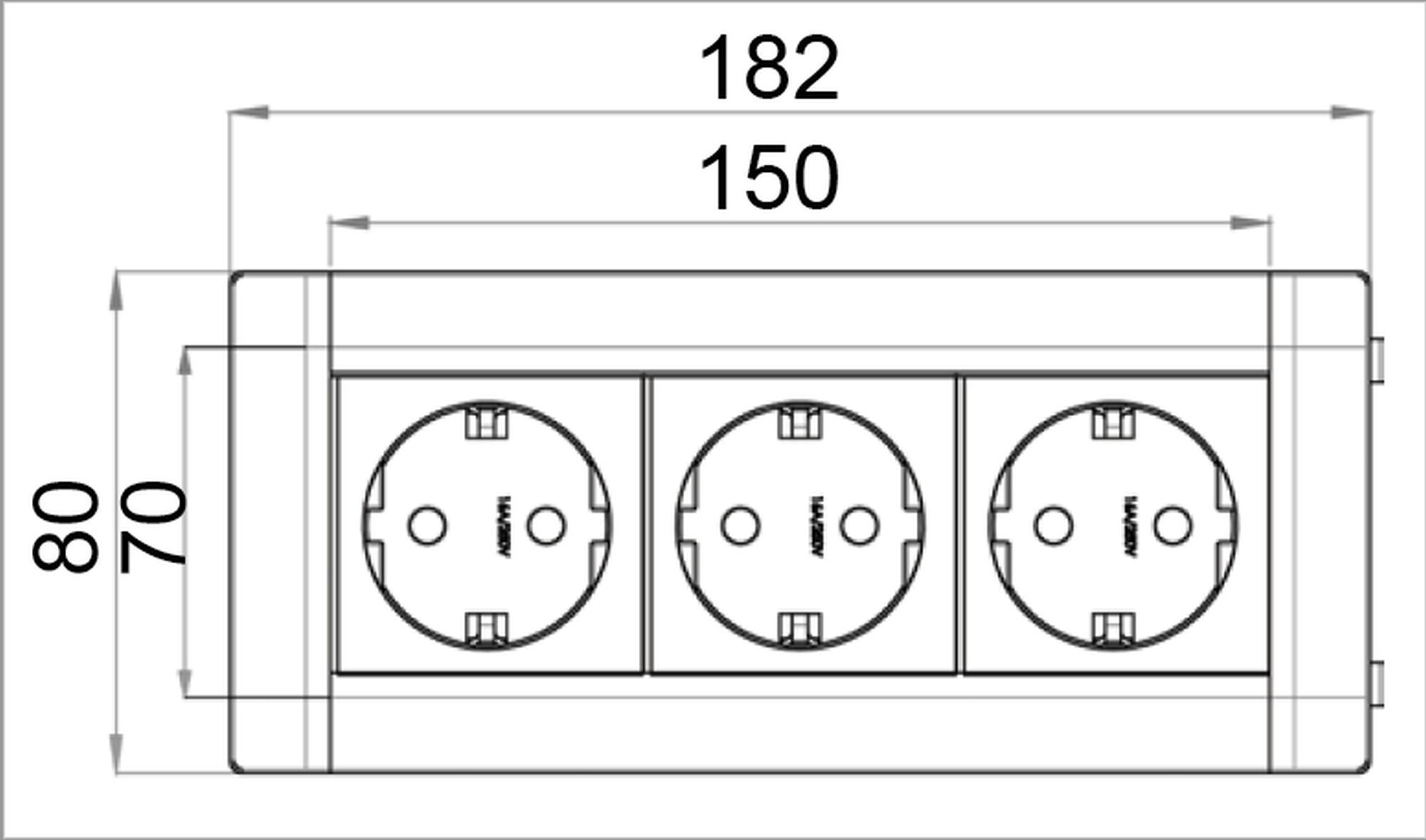 Einbausteckdose Evoline Frame Dock, 3-fach Küchensteckdose, schwarz