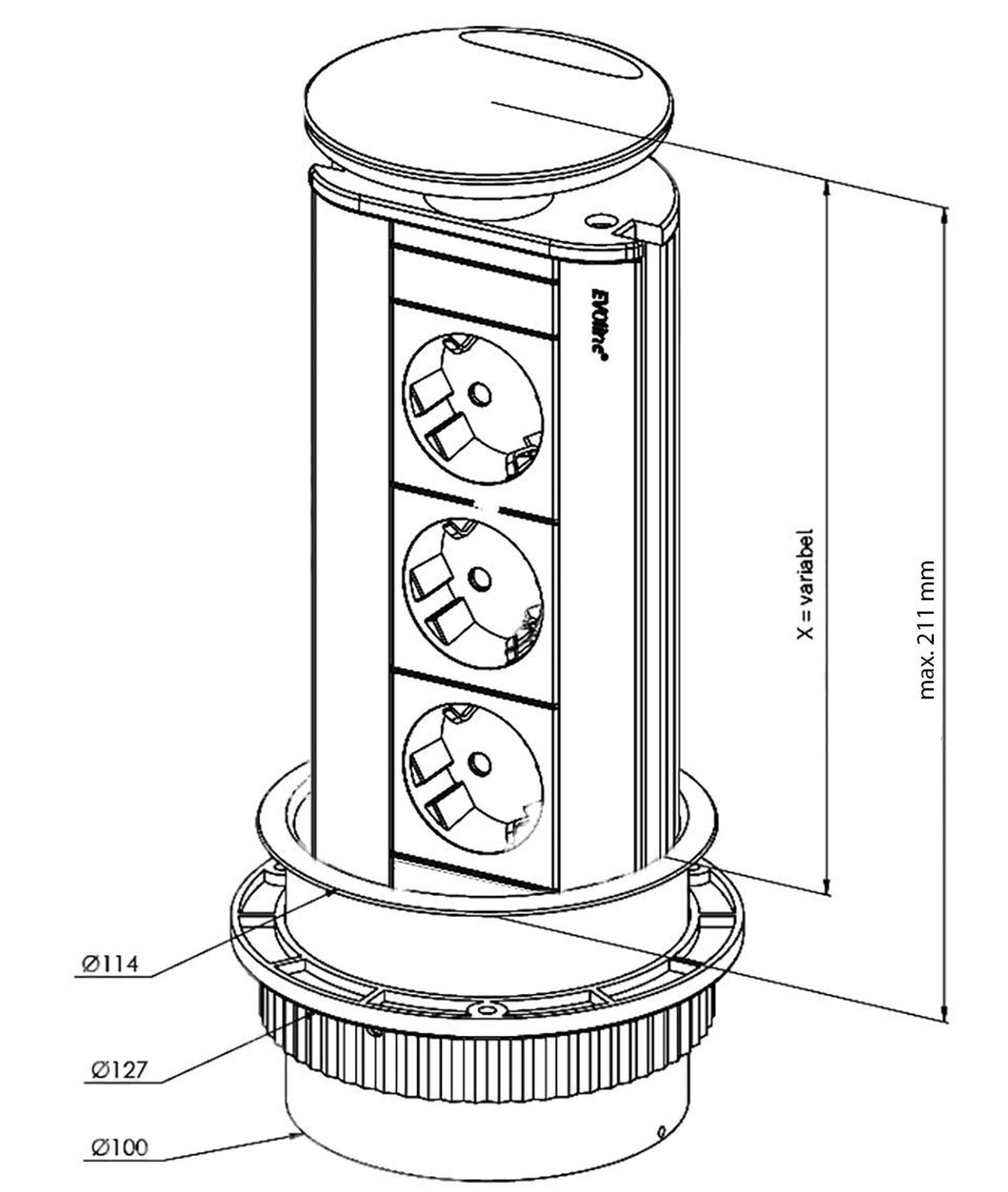 Einbausteckdose Evoline Port, 3-fach Küchensteckdose versenkbar