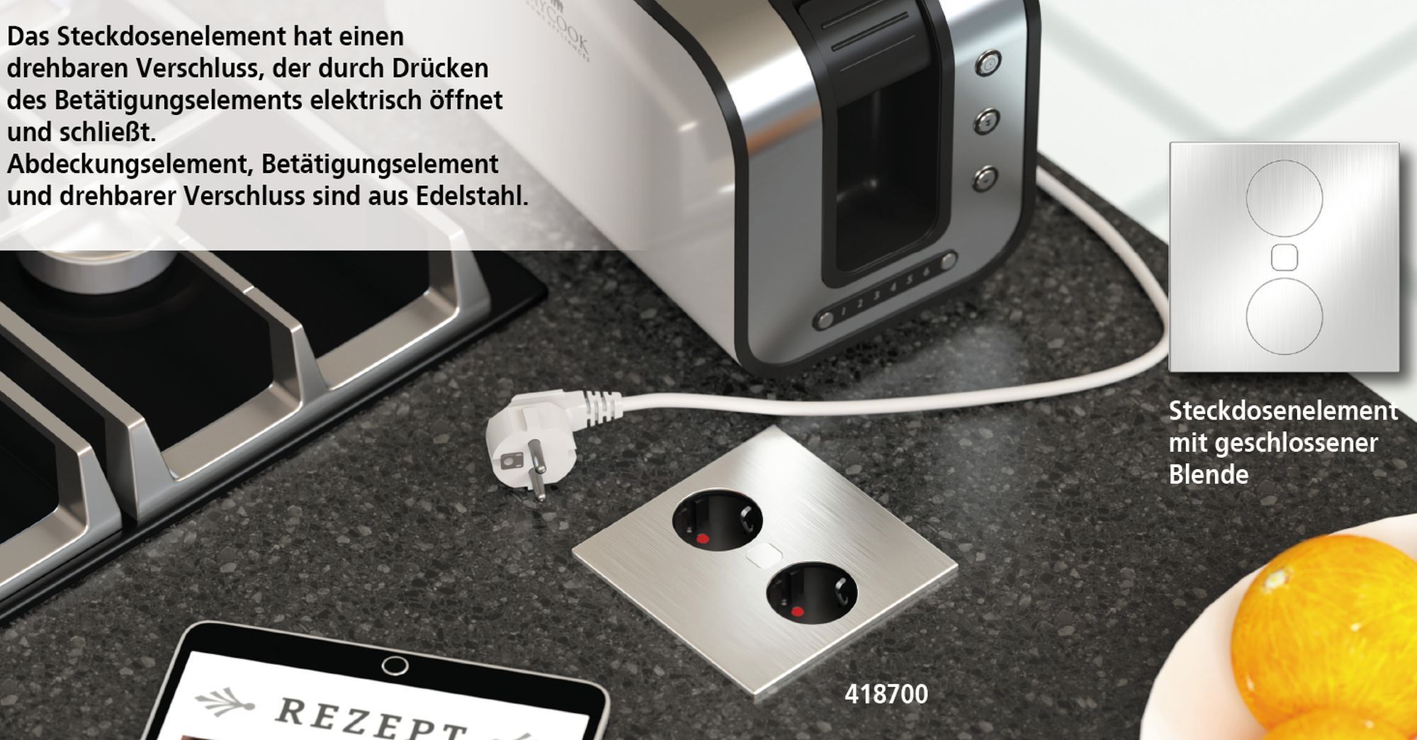Einbausteckdose Küche Büro 2-fach Küchensteckdose Duplex-Q Einbau über Schublade