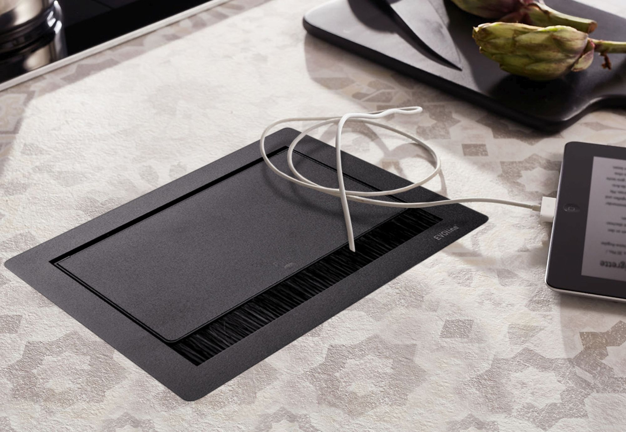 Einbausteckdose Küche, Evoline FlipTop Küchensteckdose, Bürosteckdose