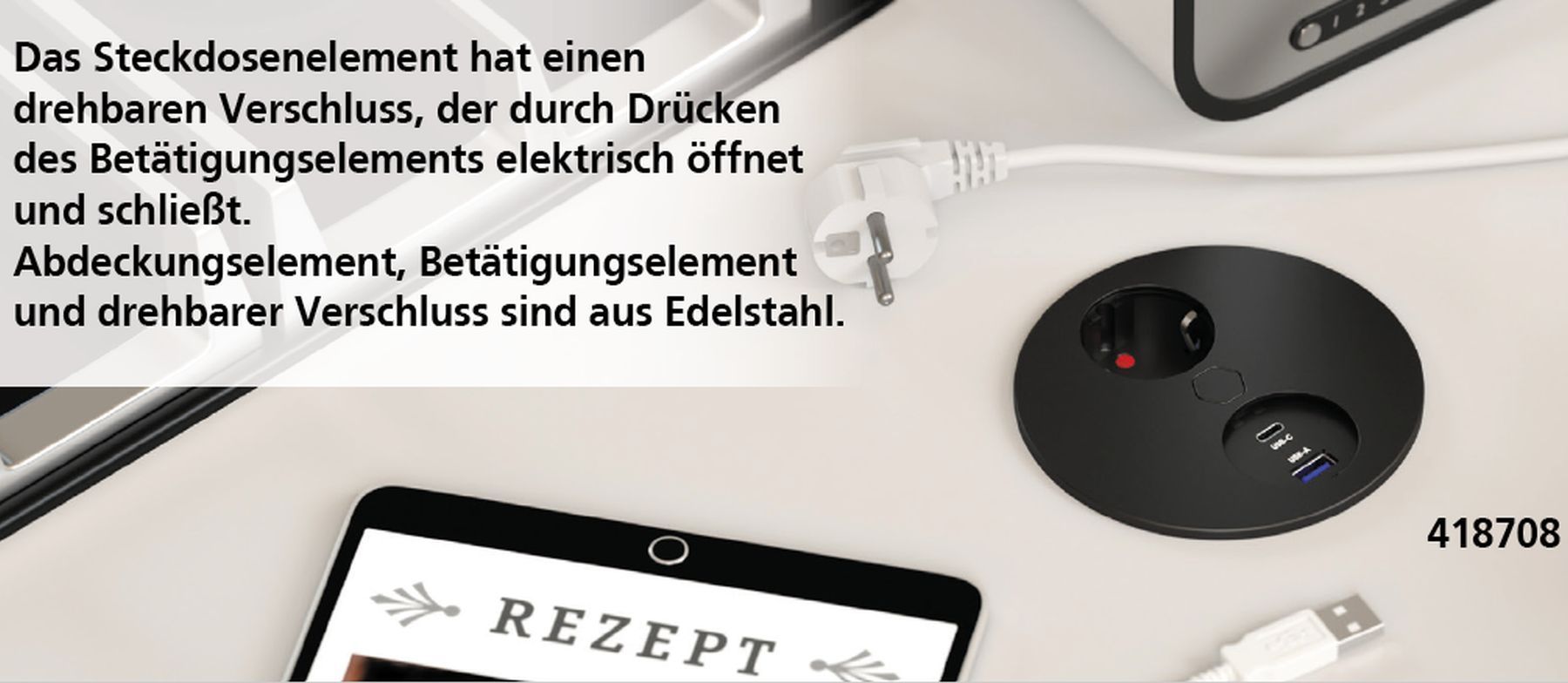 Einbausteckdose Küche, Küchensteckdose Duplex-R, USB A und C