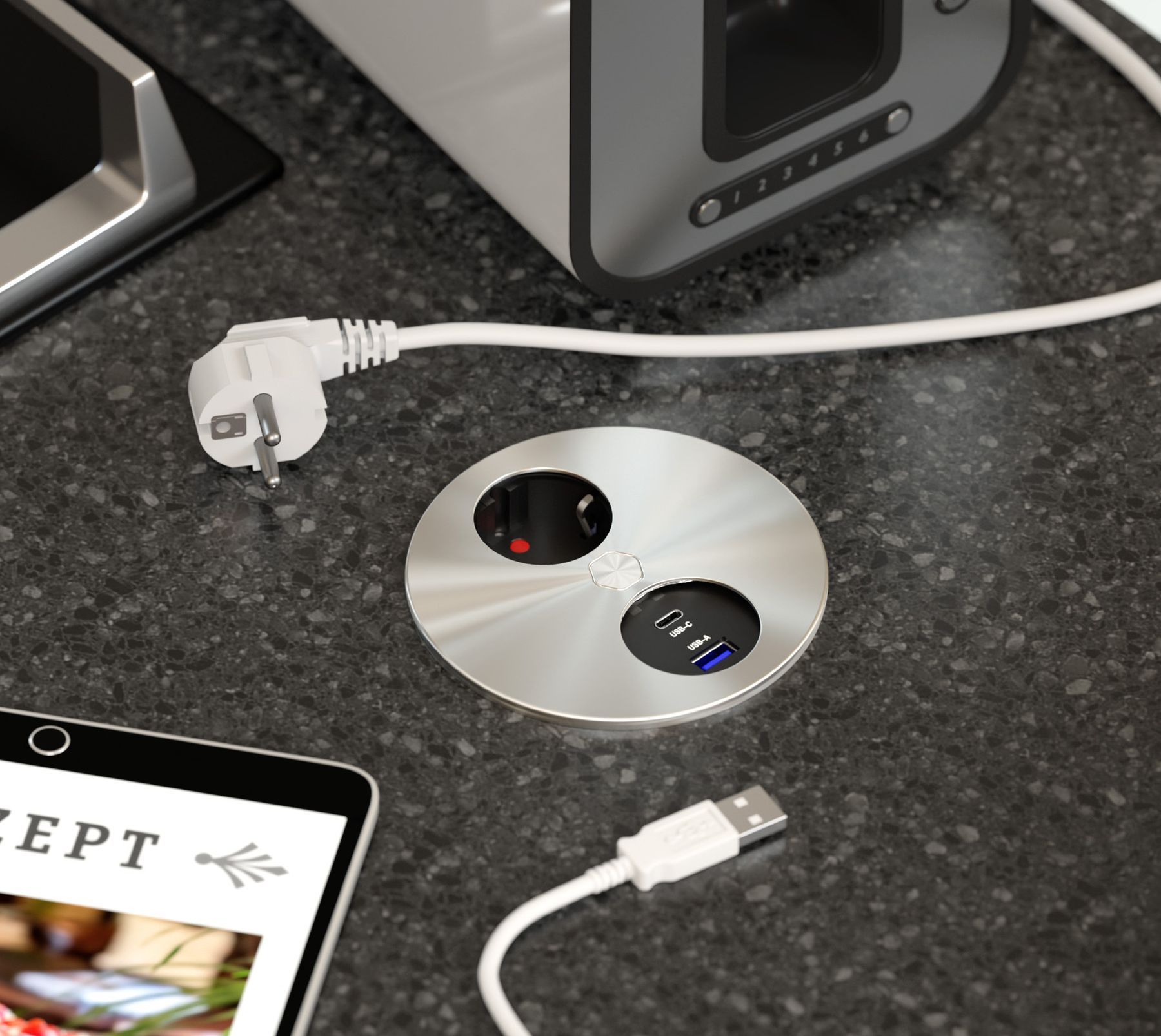 Einbausteckdose Küche, Küchensteckdose Duplex-R, USB A und C