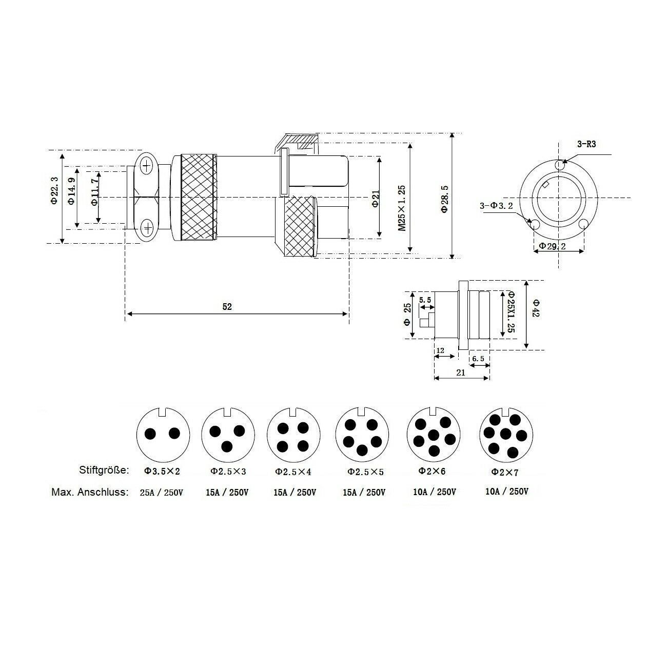 Einbaustecker Steckverbindung Hochstrom Flanschstecker Stecker Kupplung Steckdos