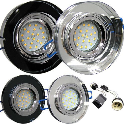 Einbaustrahler CRO klares Glas Spiegel Schwarz Chrom rund LED, + GU10 mit Klemme