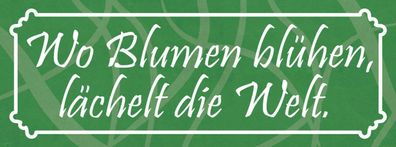• Schild Wo Blumen Bléhen Lächelt Die Welt Garten Park 27 x 10 Blech od. Holz