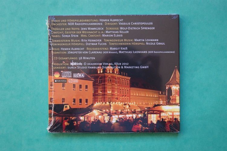 Orchseterhörspiel Eine Weihnachtsgeschichte nach Charles Dickens Ausgabe 2012 Original-CD Eine CD in der ungeöffneten Originalverpackung. Die vollständige Übersicht der Titel ist rückseitig innen vorhanden. Die Hülle hat die üblichen Gebrauchsspuren. Eine Herausgabe von Lotto Brandenburg. Versandopt
