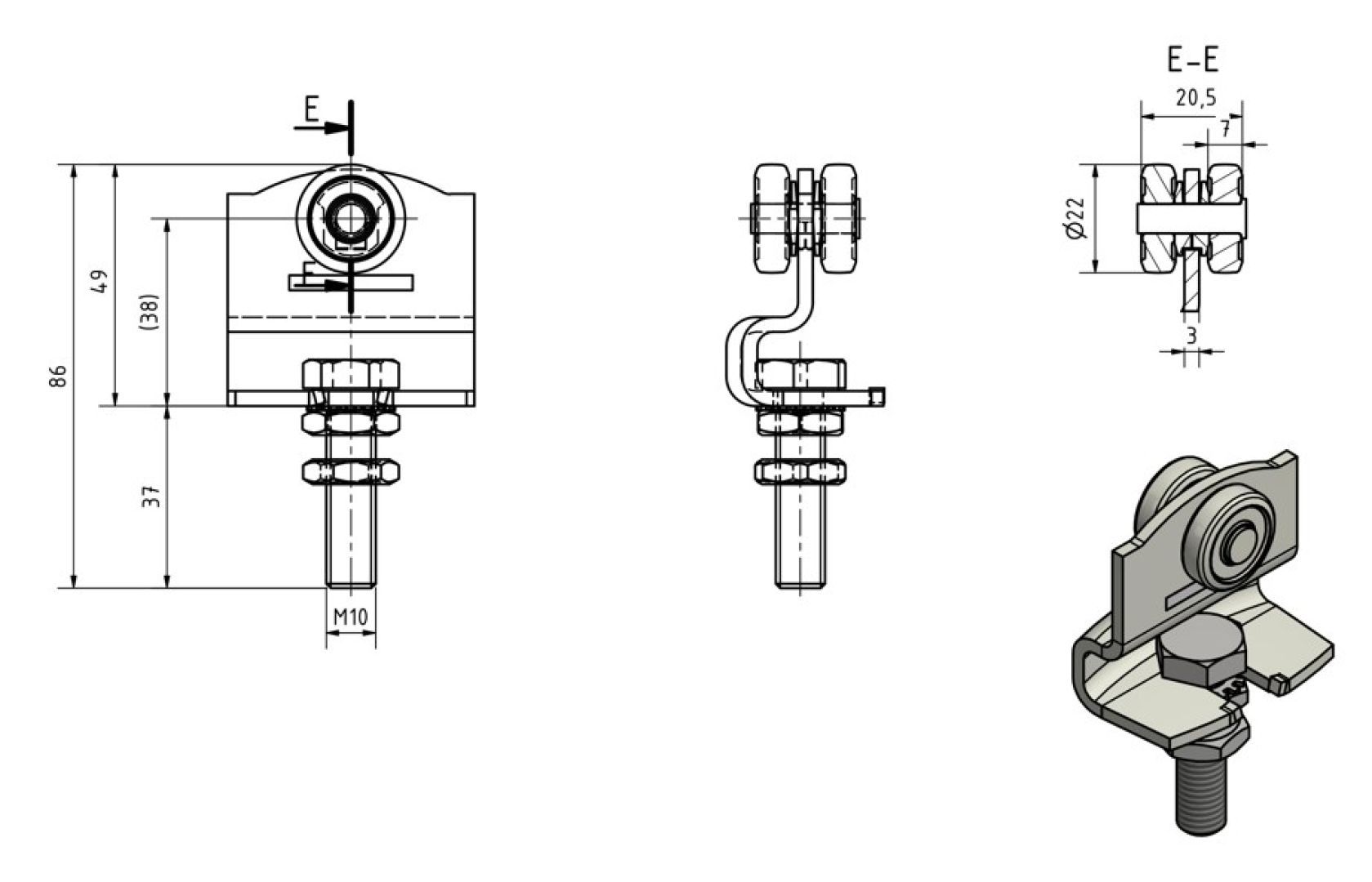 Einfachrolle Laufwagen, Rollapparat Gr.0 MEA 10330856