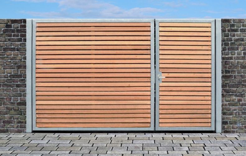 Einfahrtstor Qas Tor Verzinkt mit Pfosten & Holzfüllung 2 flügelig