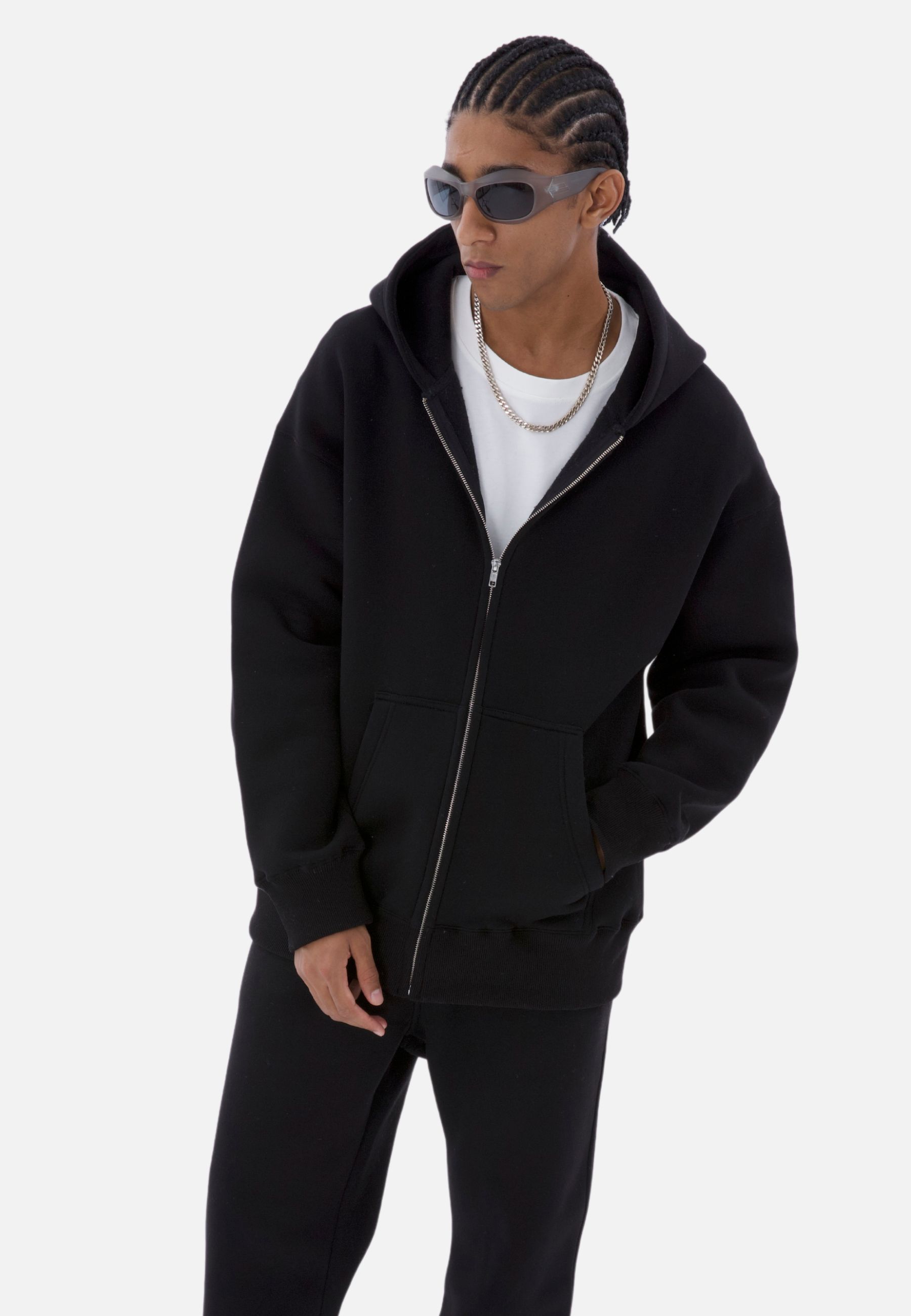 einfarbiger Basic Oversized Zip-Hoodie | Premium Herren & Damen Sweat-Jacke (Unisex)