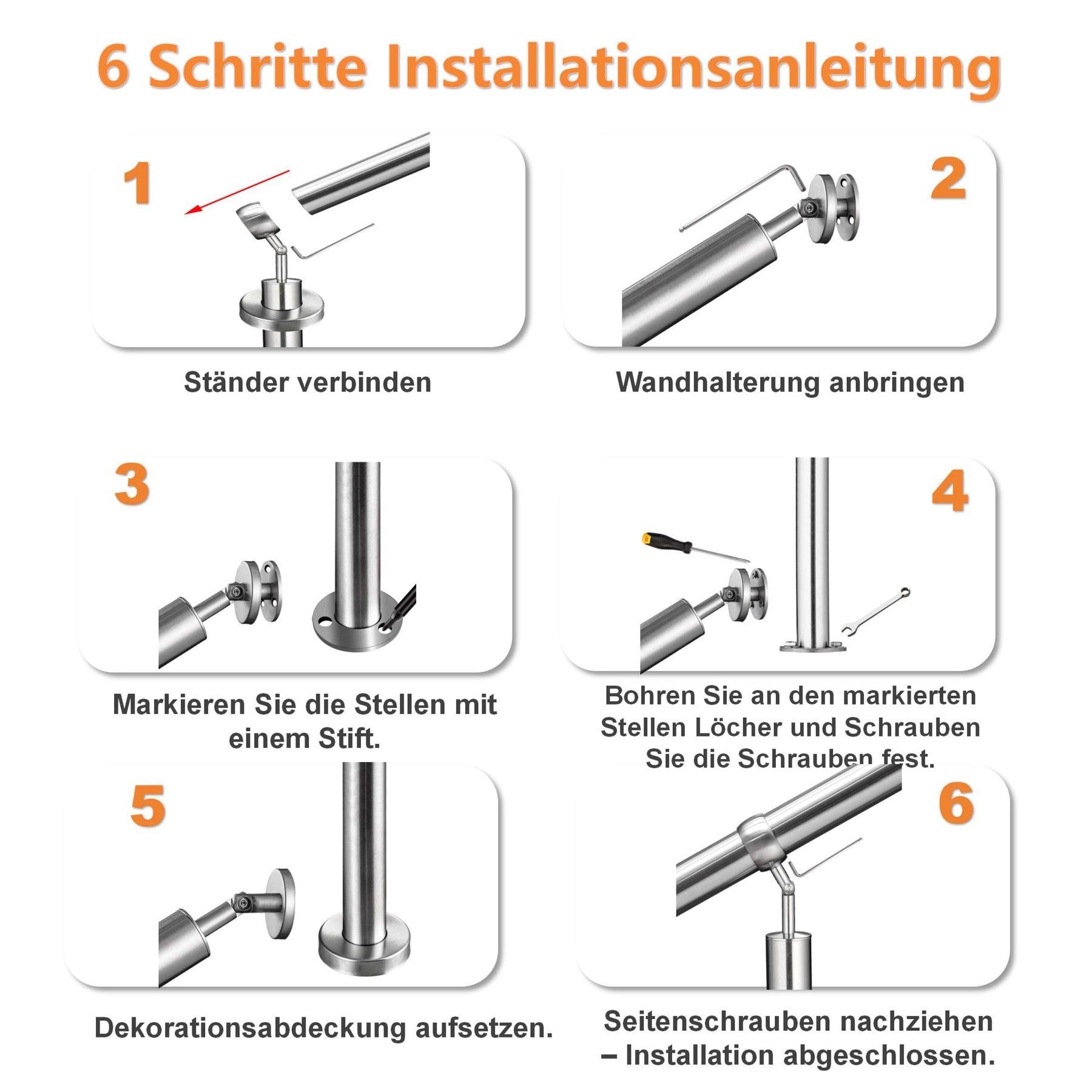 Eingangsgeländer, Geländer Edelstahl Handlauf, Treppengeländer Innen Aussen 100 cm