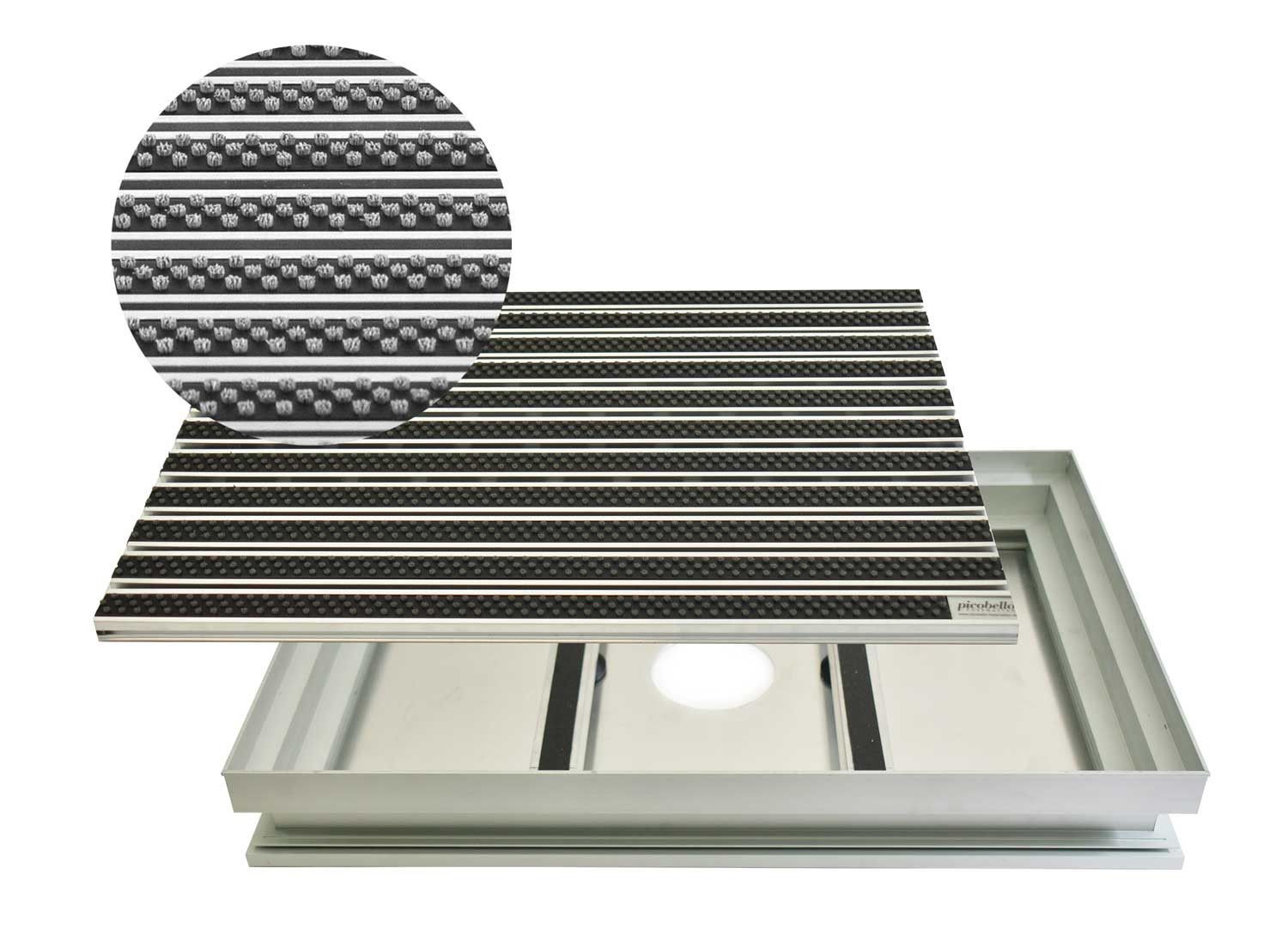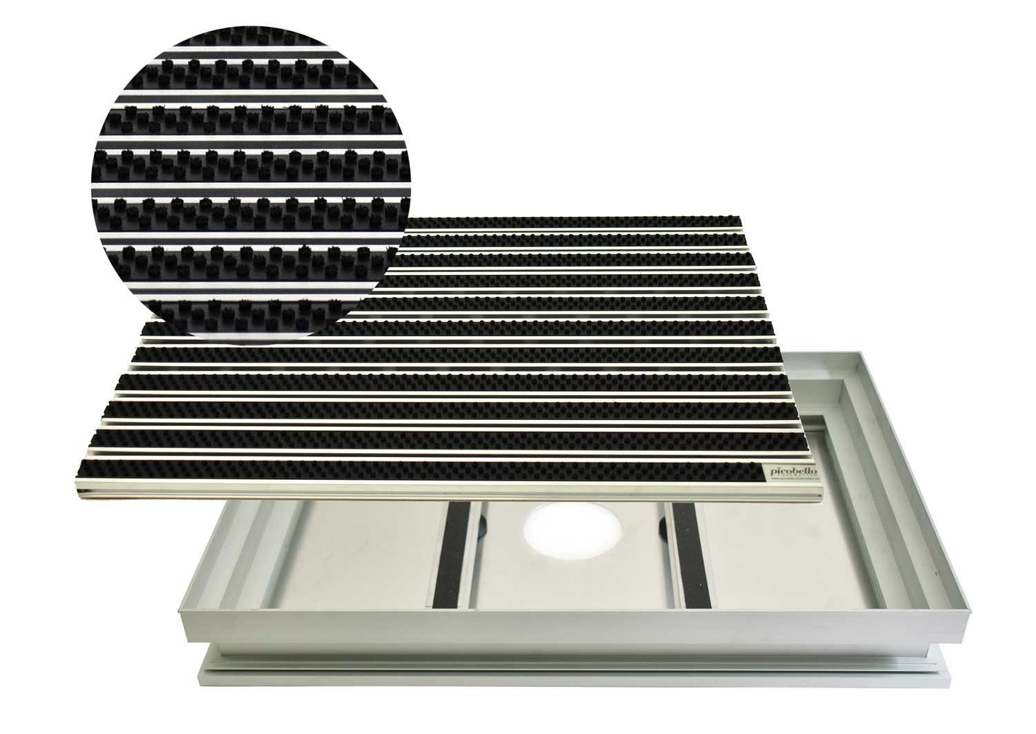 Eingangsmatte Bürsten inklusive Alu Bodenwanne mit Ablauf, Schuhabstreifer