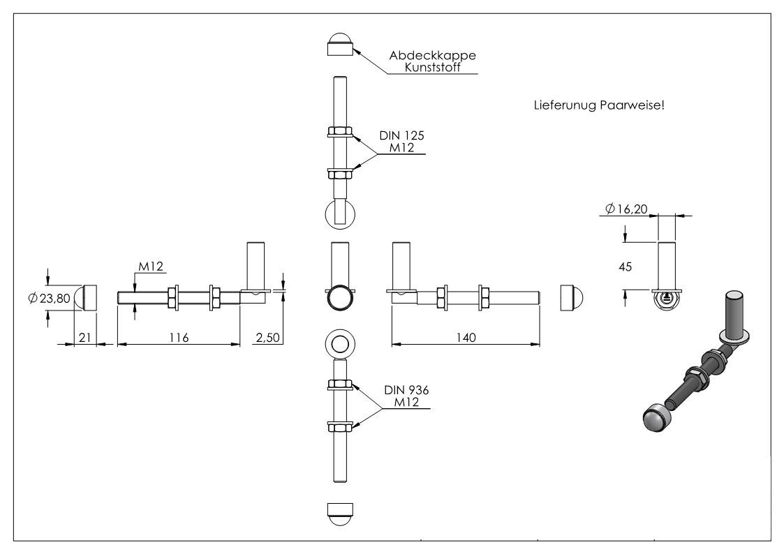 Einhängeband Torband zum Durchschrauben für Ø 16mm, Länge 140mm