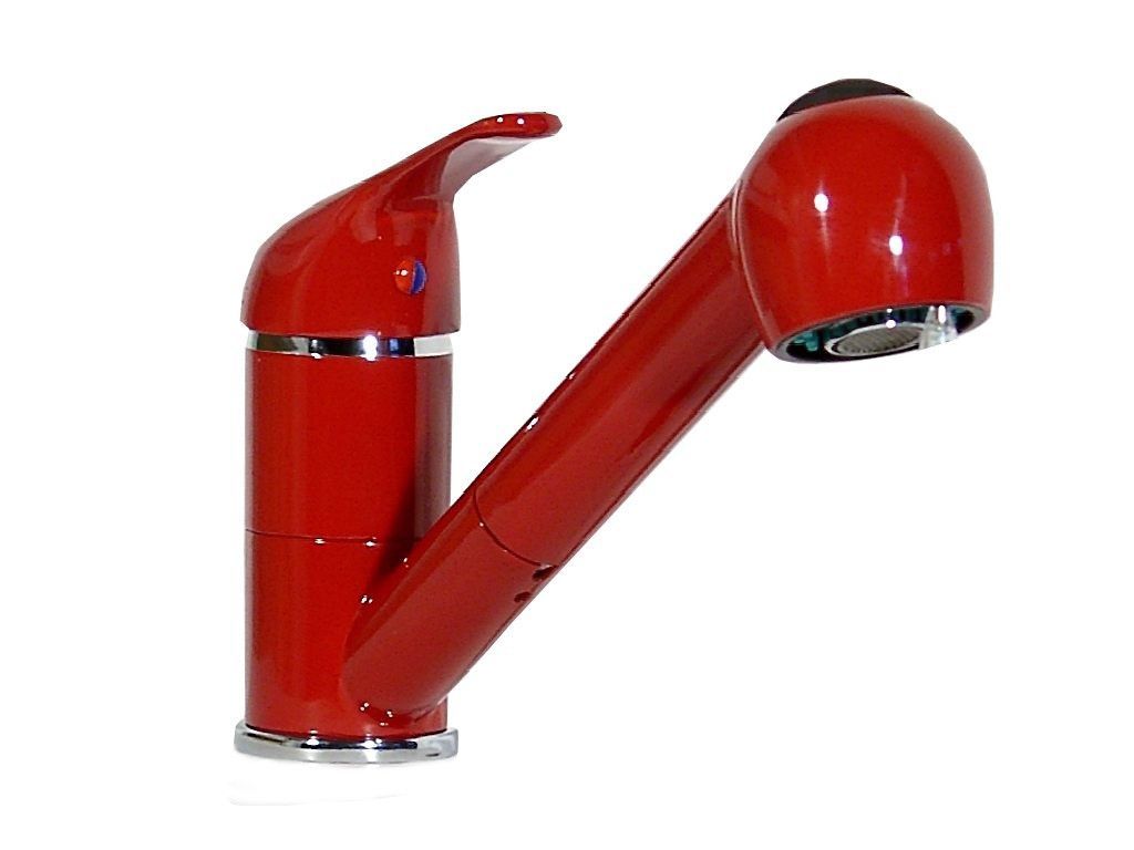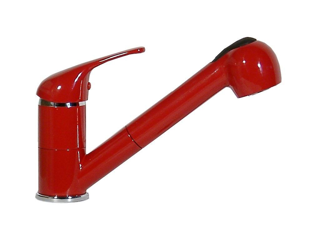 Wagner Einhebel-Küchenarmatur Spüle Wasserhahn mit Geschirrbrause rot