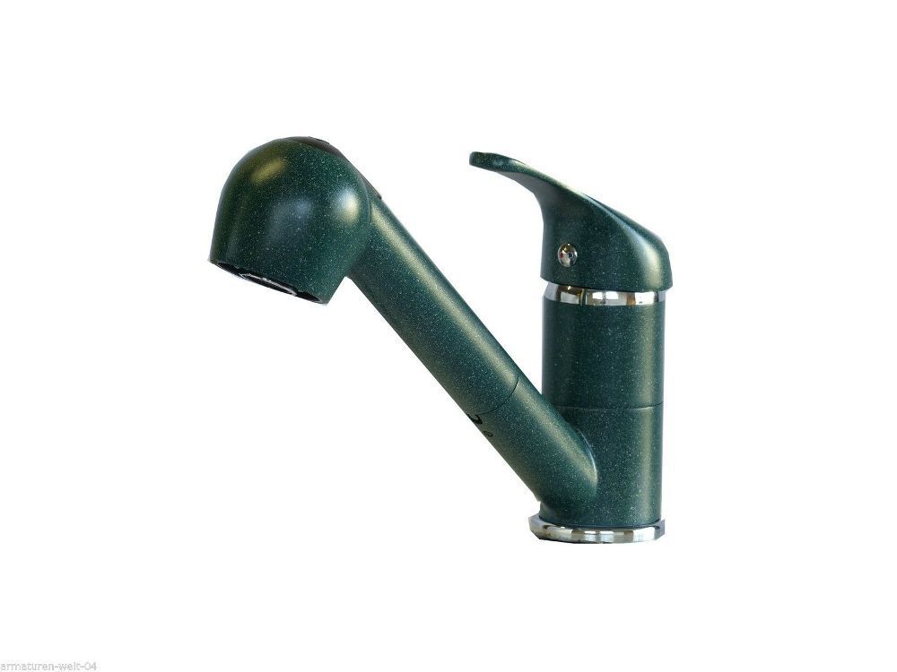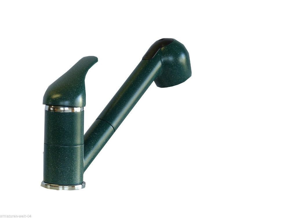 Wagner Einhebel Küchenarmatur Wasserhahn mit Geschirrbrause Granit Grün Niederdruck