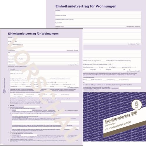 Einheitsmietvertrag - Wohnungen, DIN A4, mit Hausordnung, 1 Satz, blau