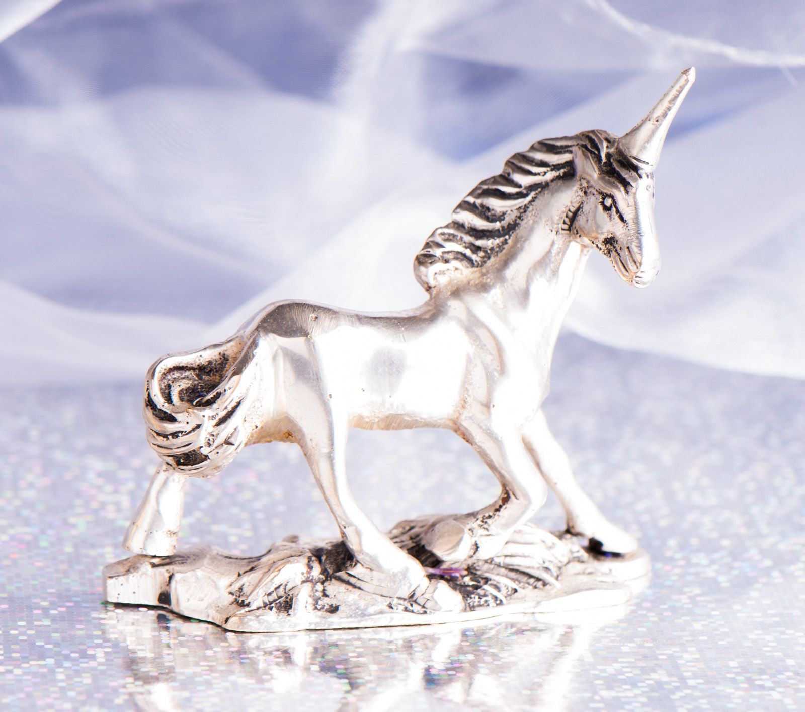 Einhorn aus Messing versilbert 6 x 7 cm 150 g Glücksbringer Talisman Geschenk