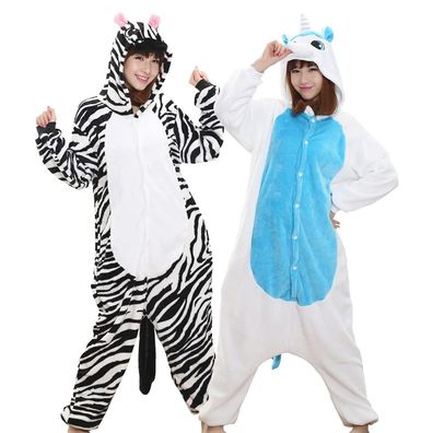 Einhorn Tier Onesie Erwachsene Damen Herren Tier Cosplay Pyjamas Plusch Winter