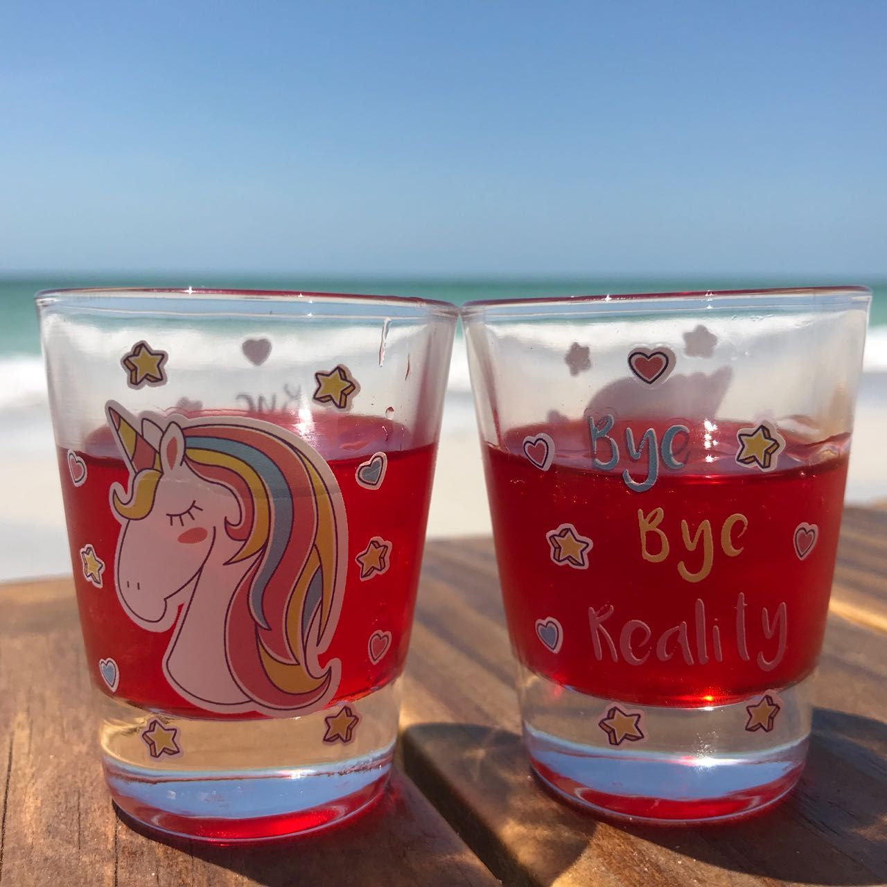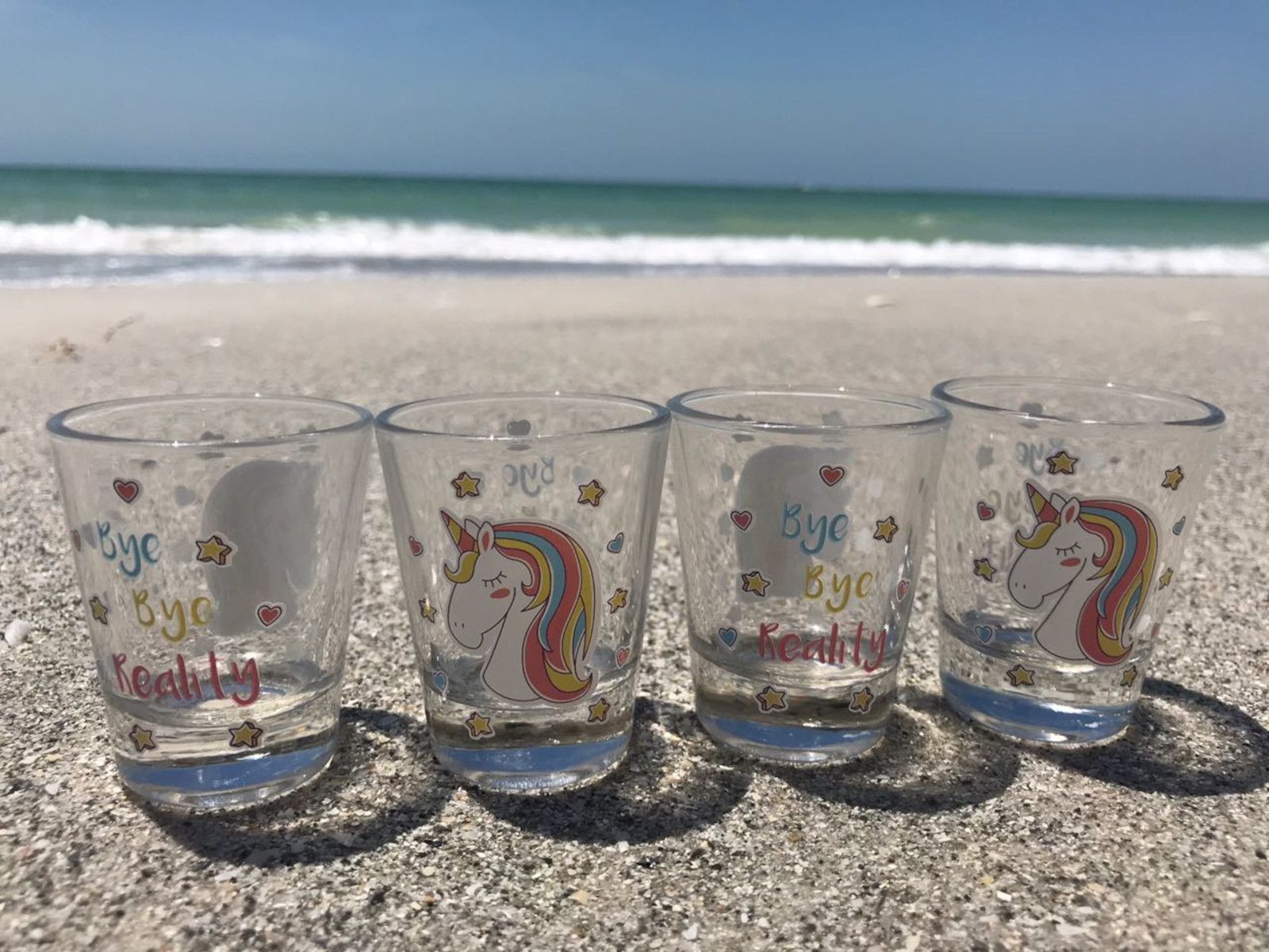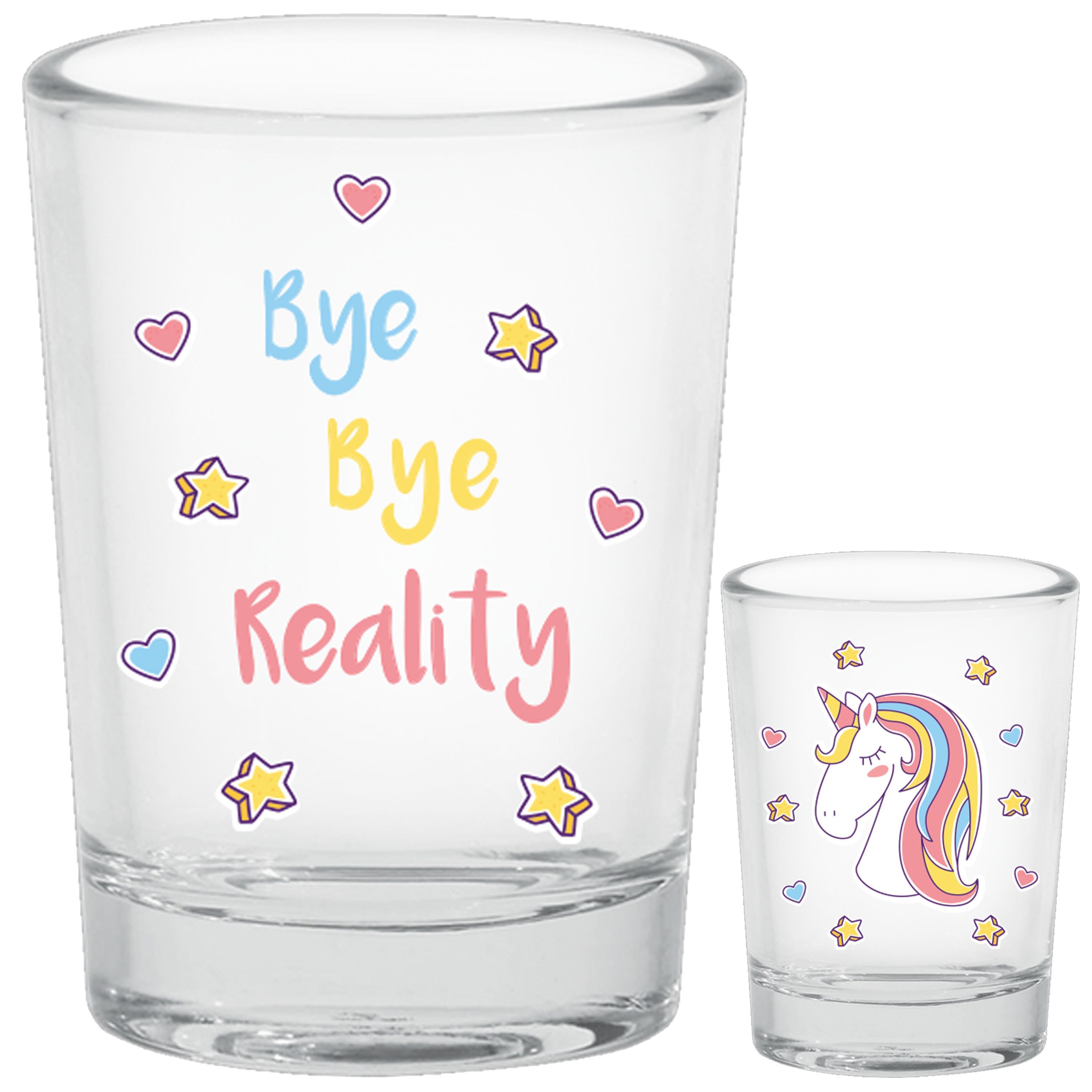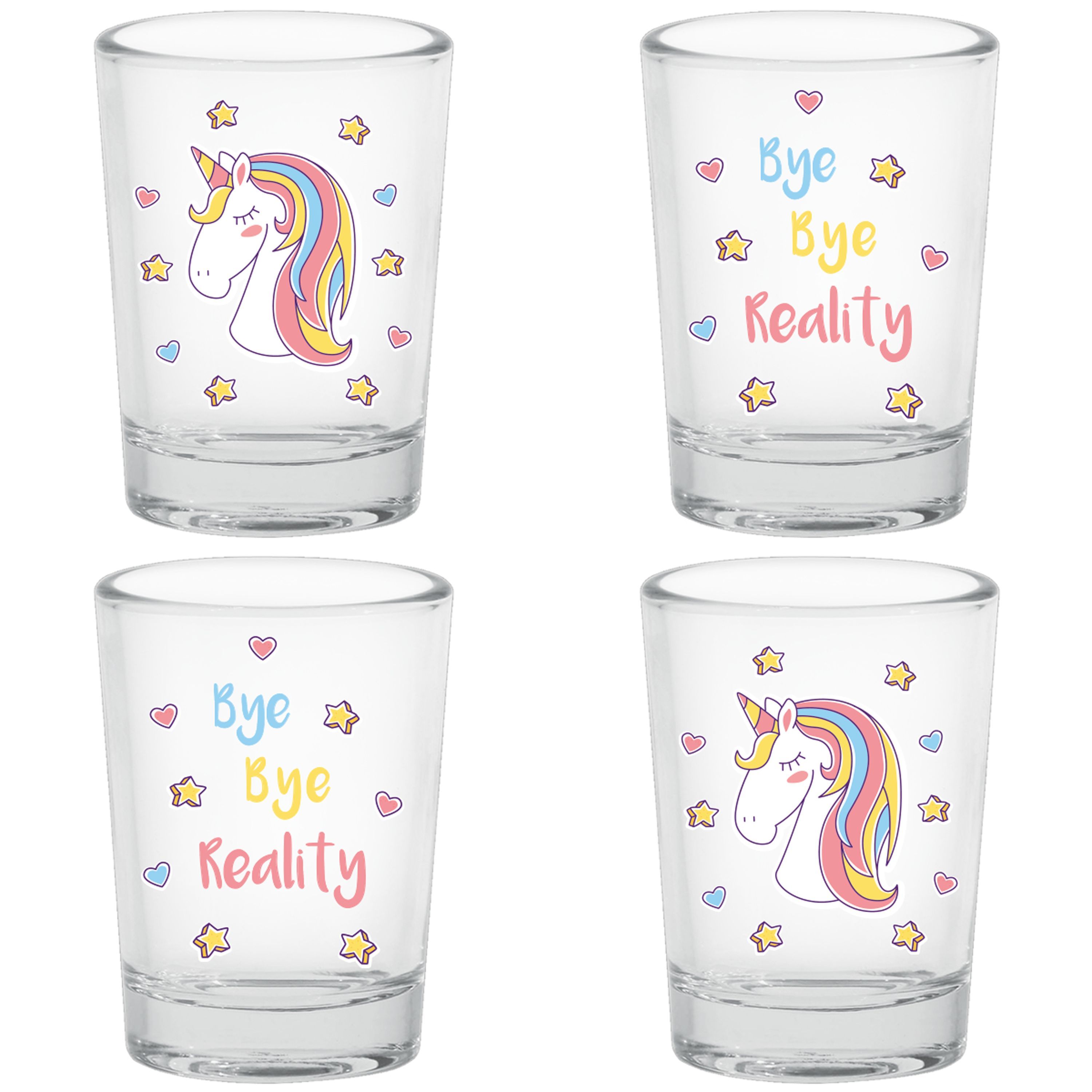 Einhorn Schnapsgläser - Bye Bye Reality (4 Stück) Pinnchen Gläser Unicorn Shotglas