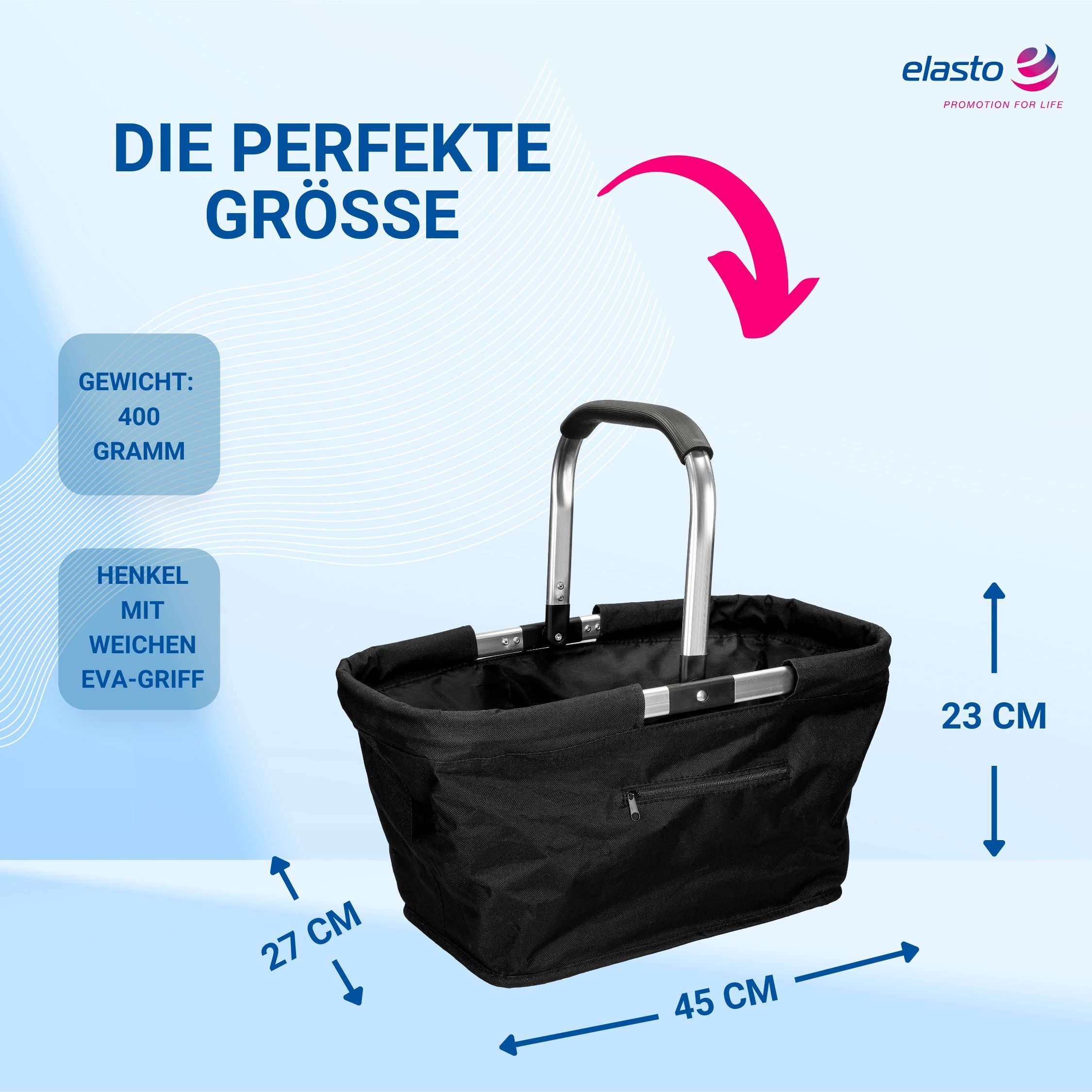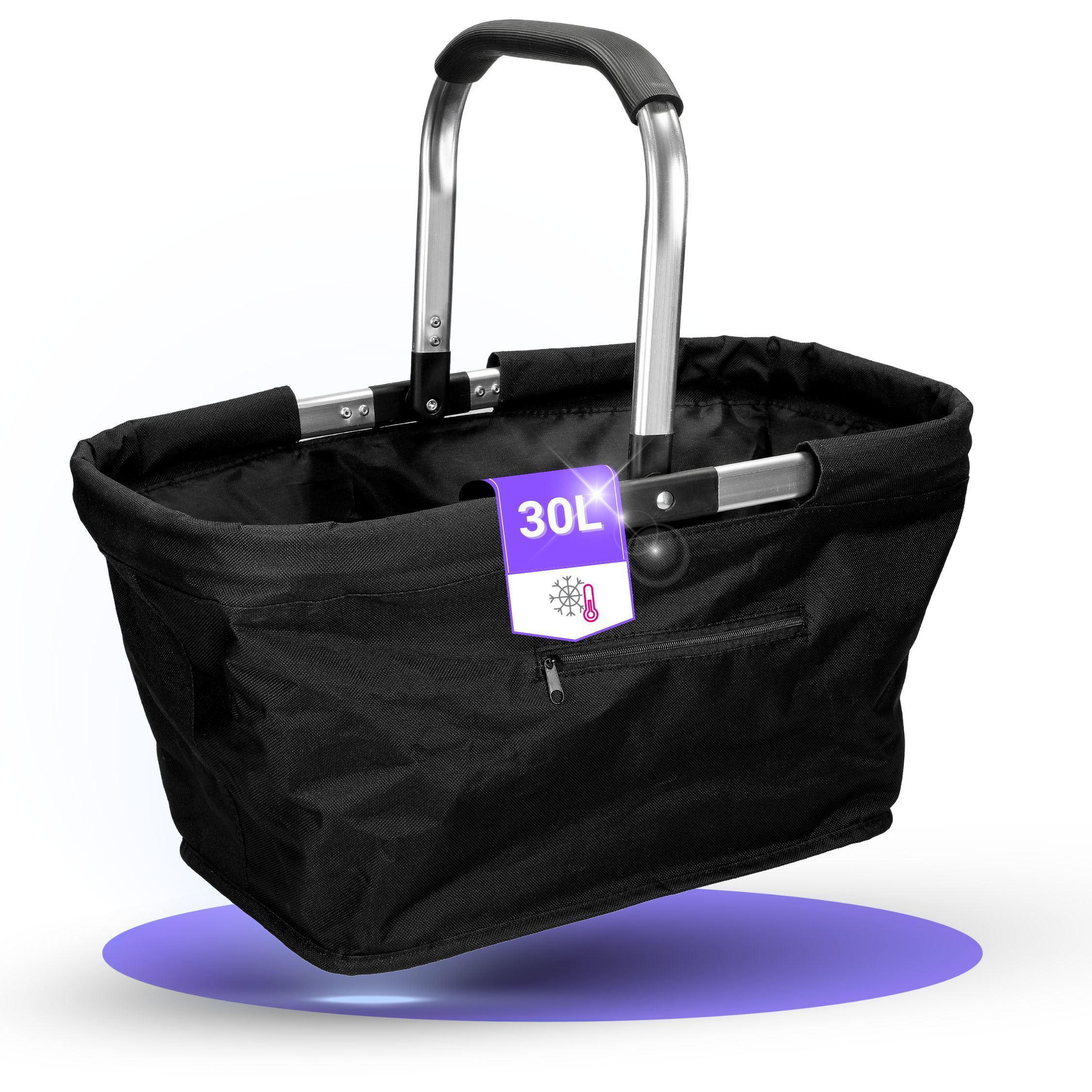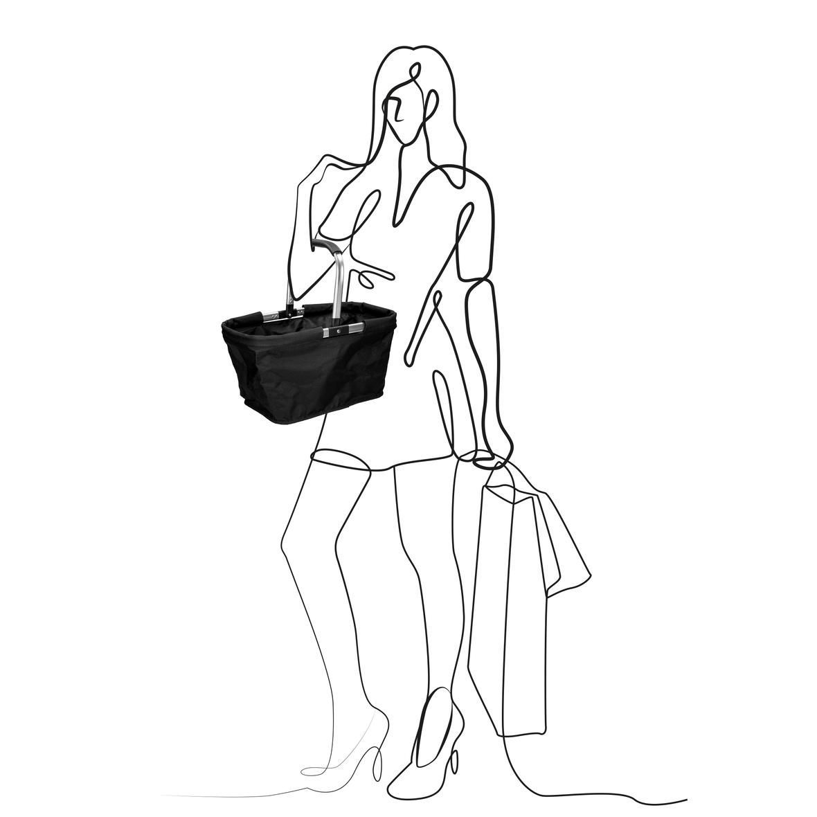 Entdecken Sie ein unverzichtbares Accessoire, das Ihnen das Einkaufen zum Vergnügen macht. Unser geräumiger, rechteckiger Einkaufskorb ist aus einem leichten und dennoch robusten Alurahmen gefertigt, der für Langlebigkeit sorgt. Das doppellagige Polyester-Material, das den Rahmen fortlaufend umnäht,