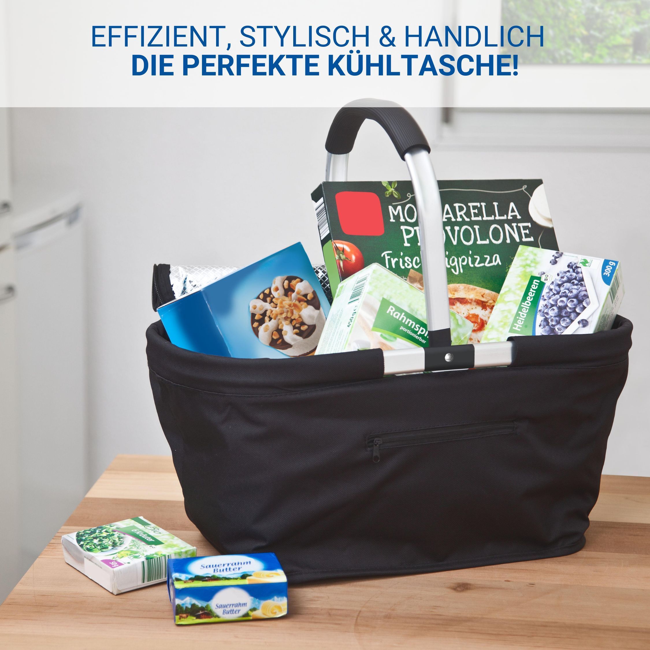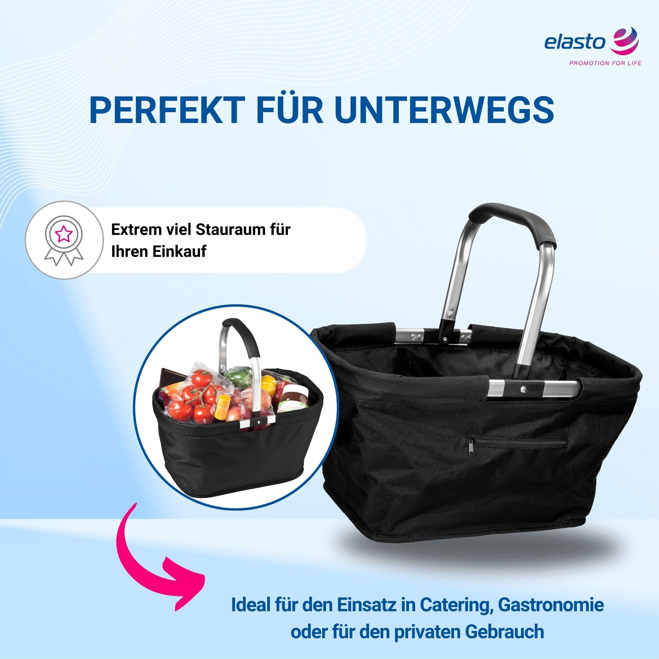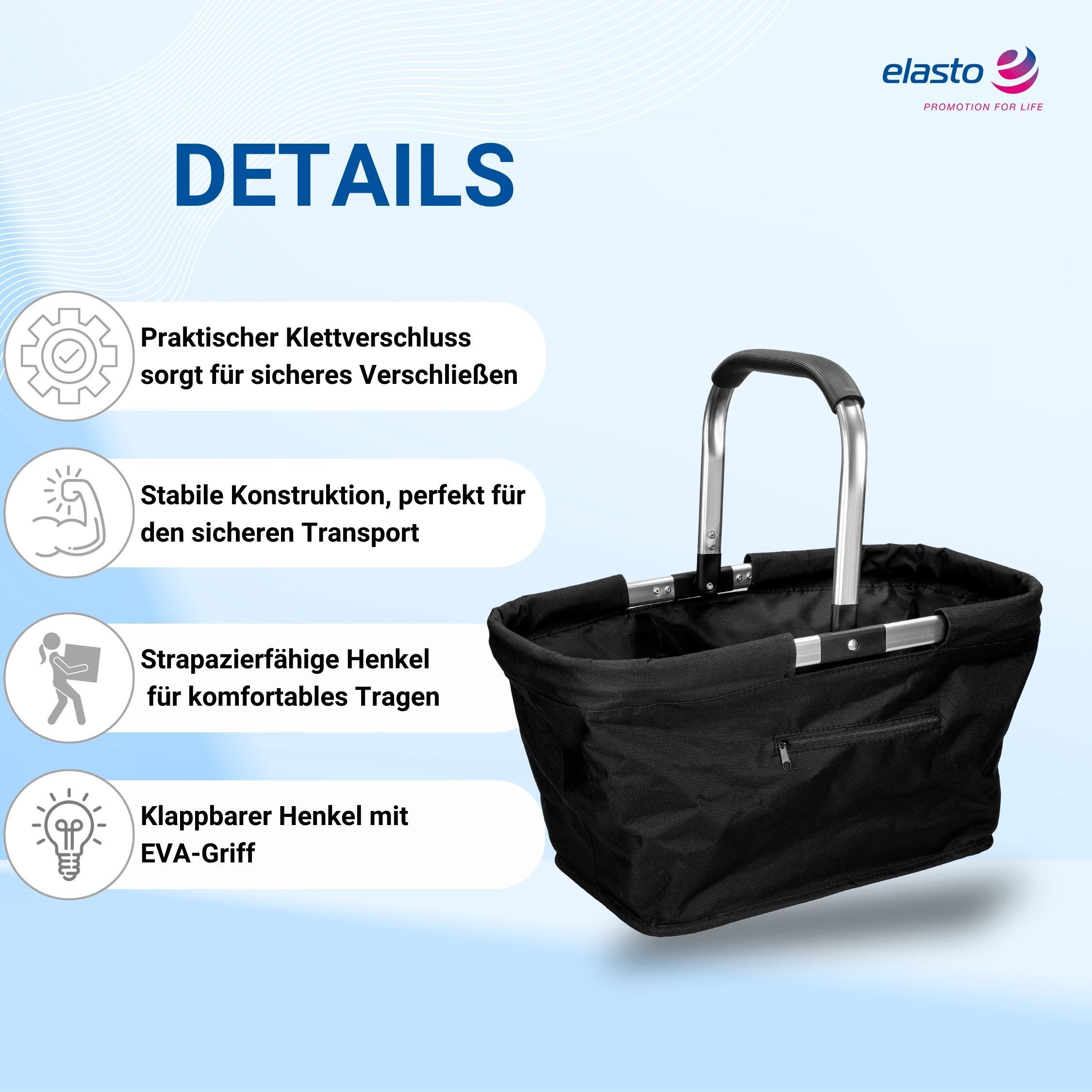 Entdecken Sie ein unverzichtbares Accessoire, das Ihnen das Einkaufen zum Vergnügen macht. Unser geräumiger, rechteckiger Einkaufskorb ist aus einem leichten und dennoch robusten Alurahmen gefertigt, der für Langlebigkeit sorgt. Das doppellagige Polyester-Material, das den Rahmen fortlaufend umnäht,