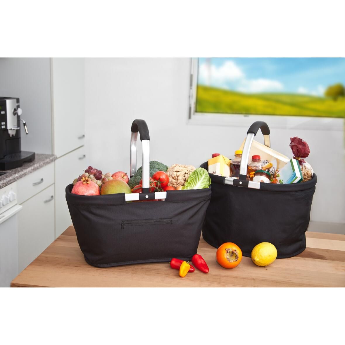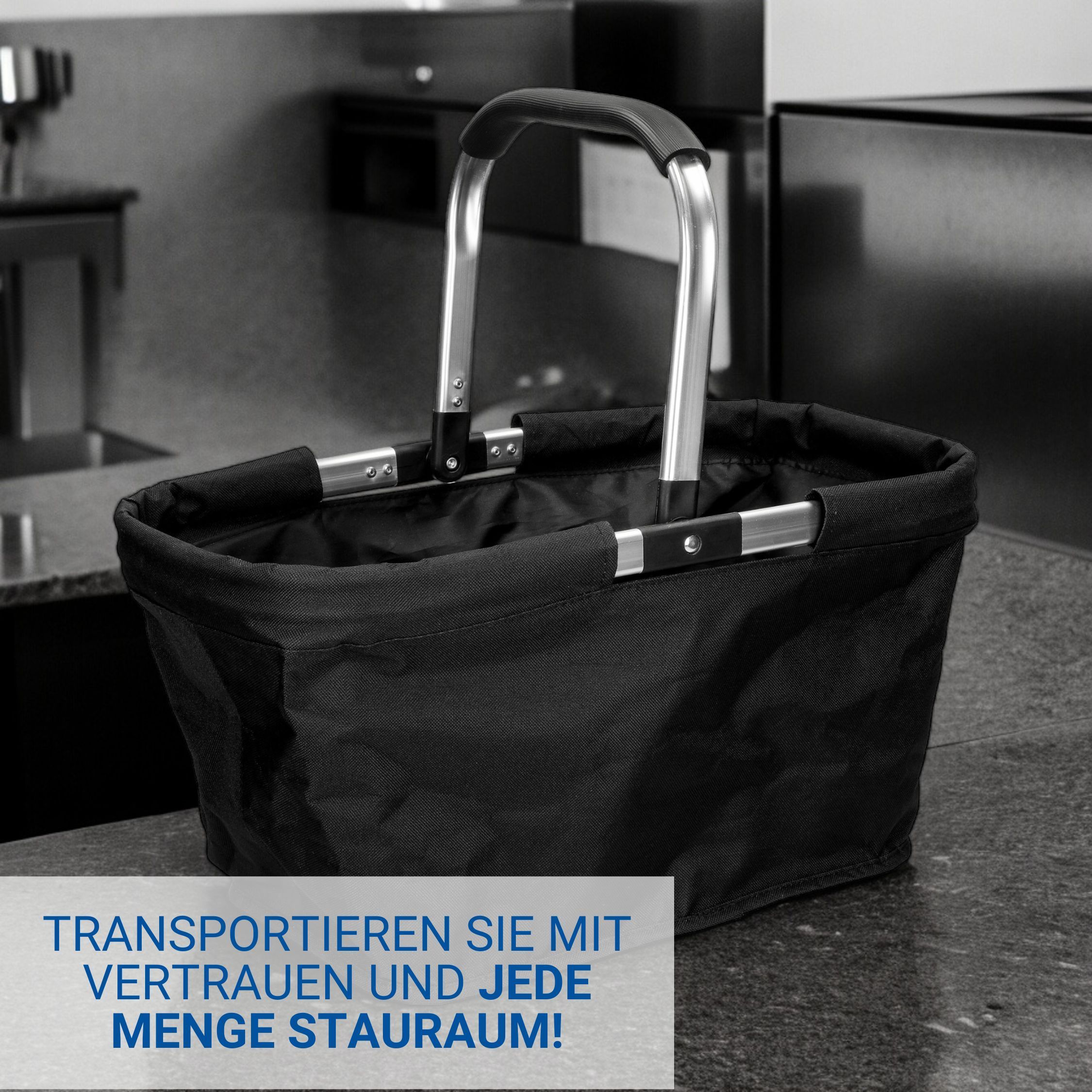 Einkaufskorb 30 Liter Füllvolumen VIGO Faltbare Einkaufstasche in schwarz mit Griff