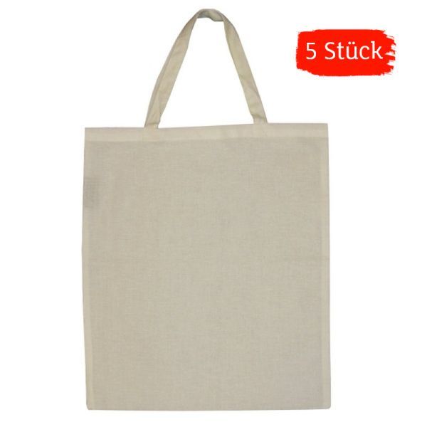 Einkaufstasche 38 x 42 cm, 5 Stück Baumwolle natur
