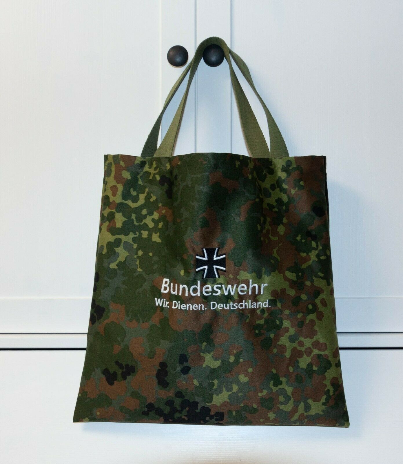 Einkaufstasche im 5 Farben Tarndruck der Bundeswehr mit Stickerei