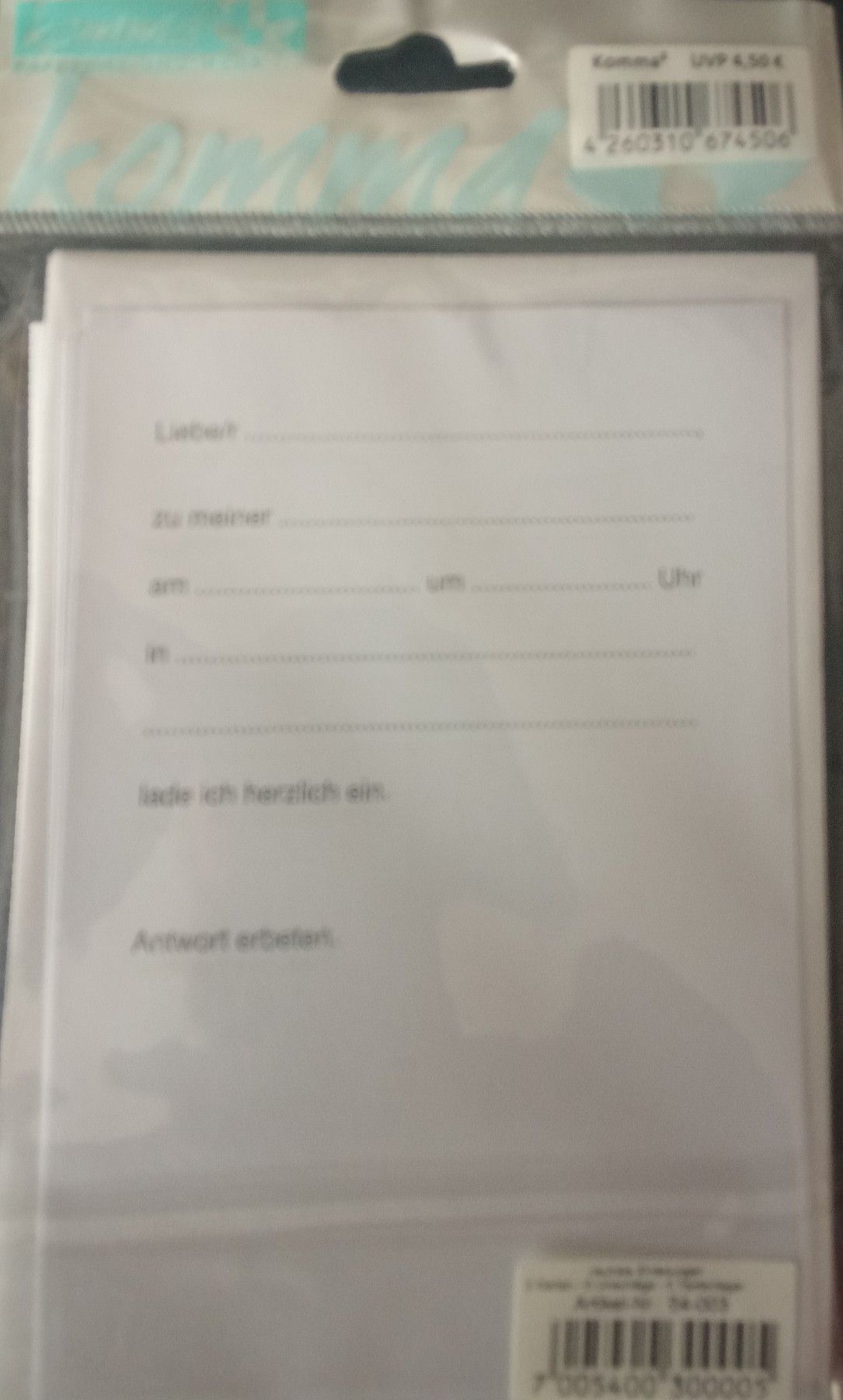 Einladungskarten mit Kuvert im 5 er Pack mit Texeinleger