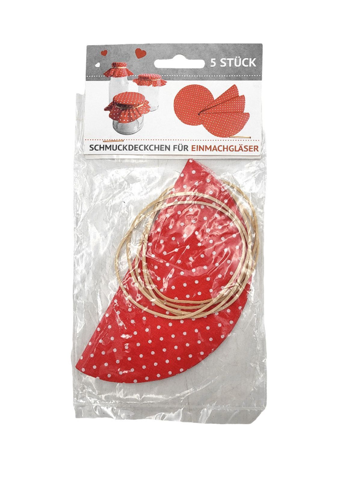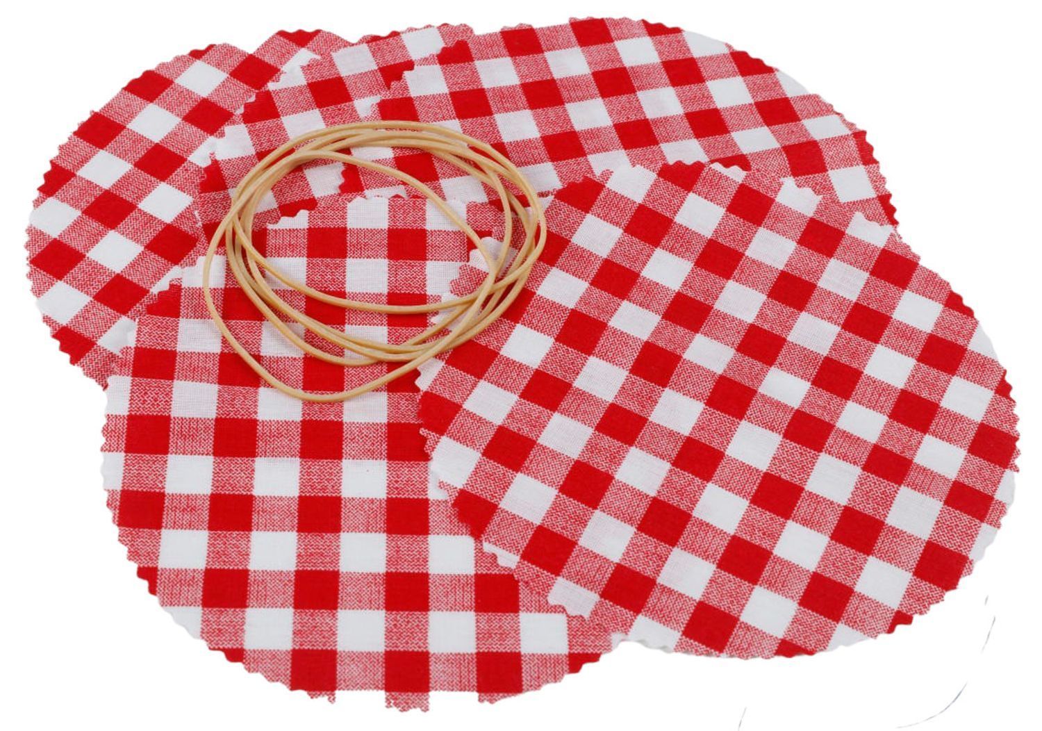 Einmachglas Schmuckdeckchen 5 Stück rund mit Gummi Glashauben Stoffdeckchen