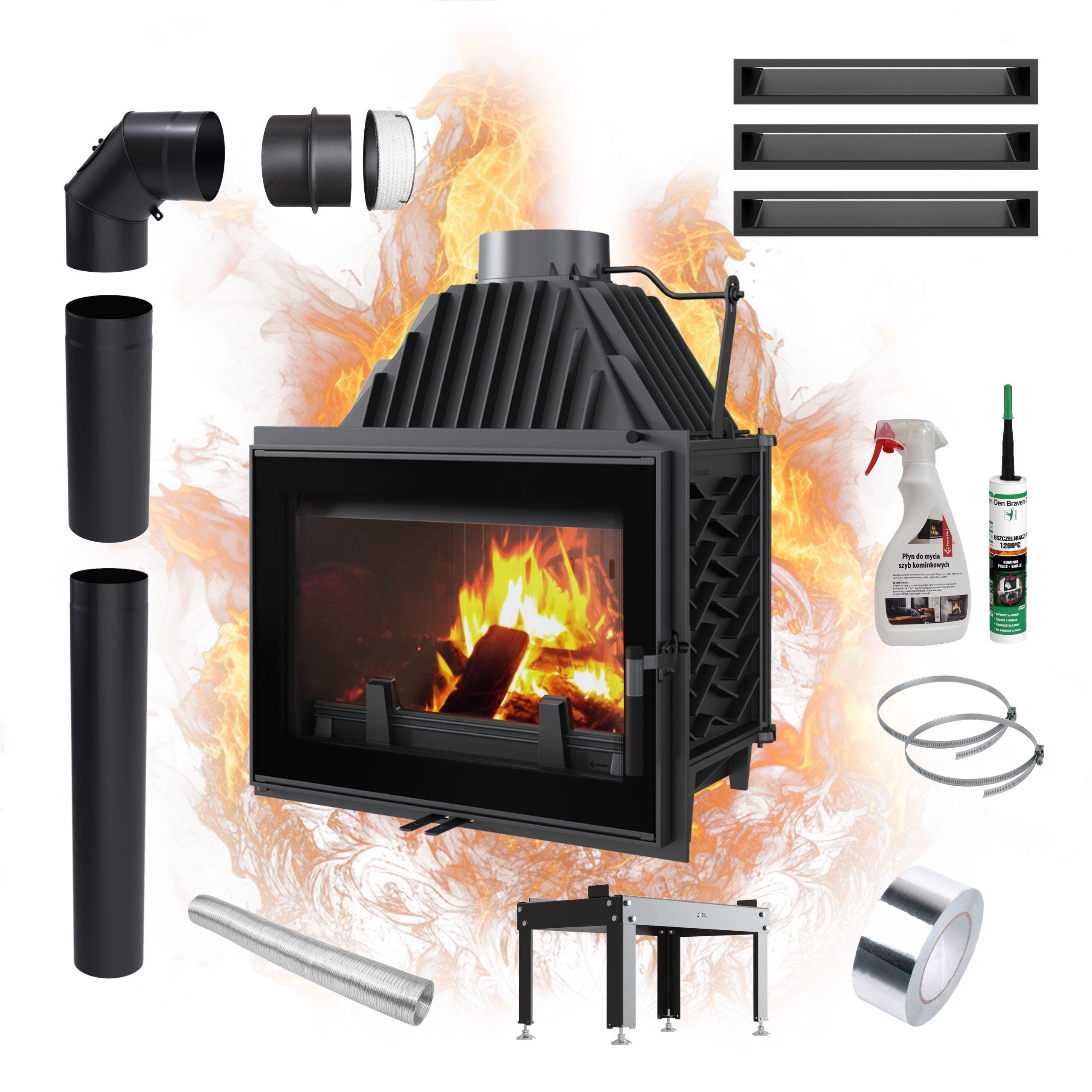 Einsatz Luftkamin KRATKI ZOSIA 12 kW Gusseisen Rekuperations Ansaug SET Ø 200