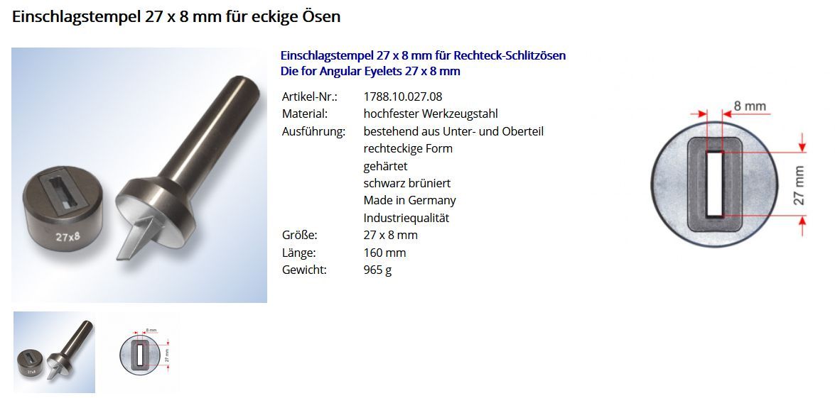 Einschlagstempel 27 x 8 mm für Rechteck-Schlitzöse Einsetzwerkzeug PVC Plane Neu