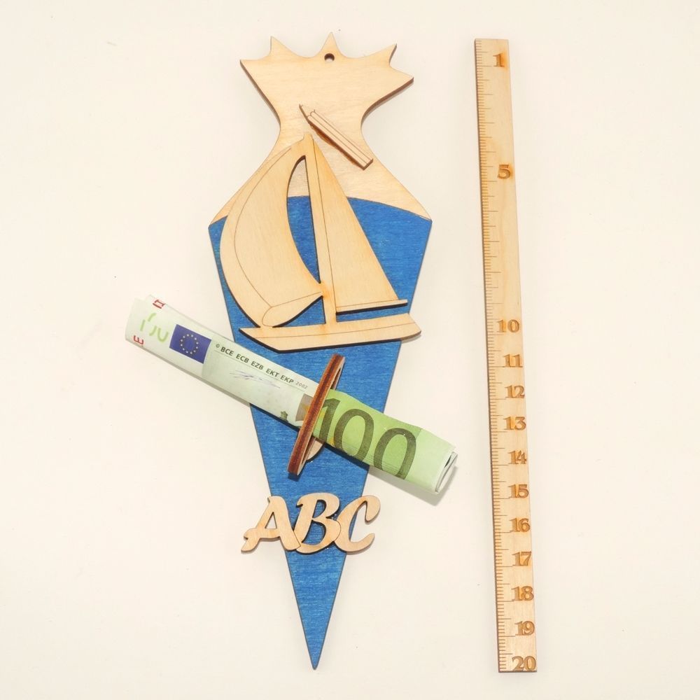 Einschulung Geldgeschenk Schulanfang junge blau Holz Schultüte