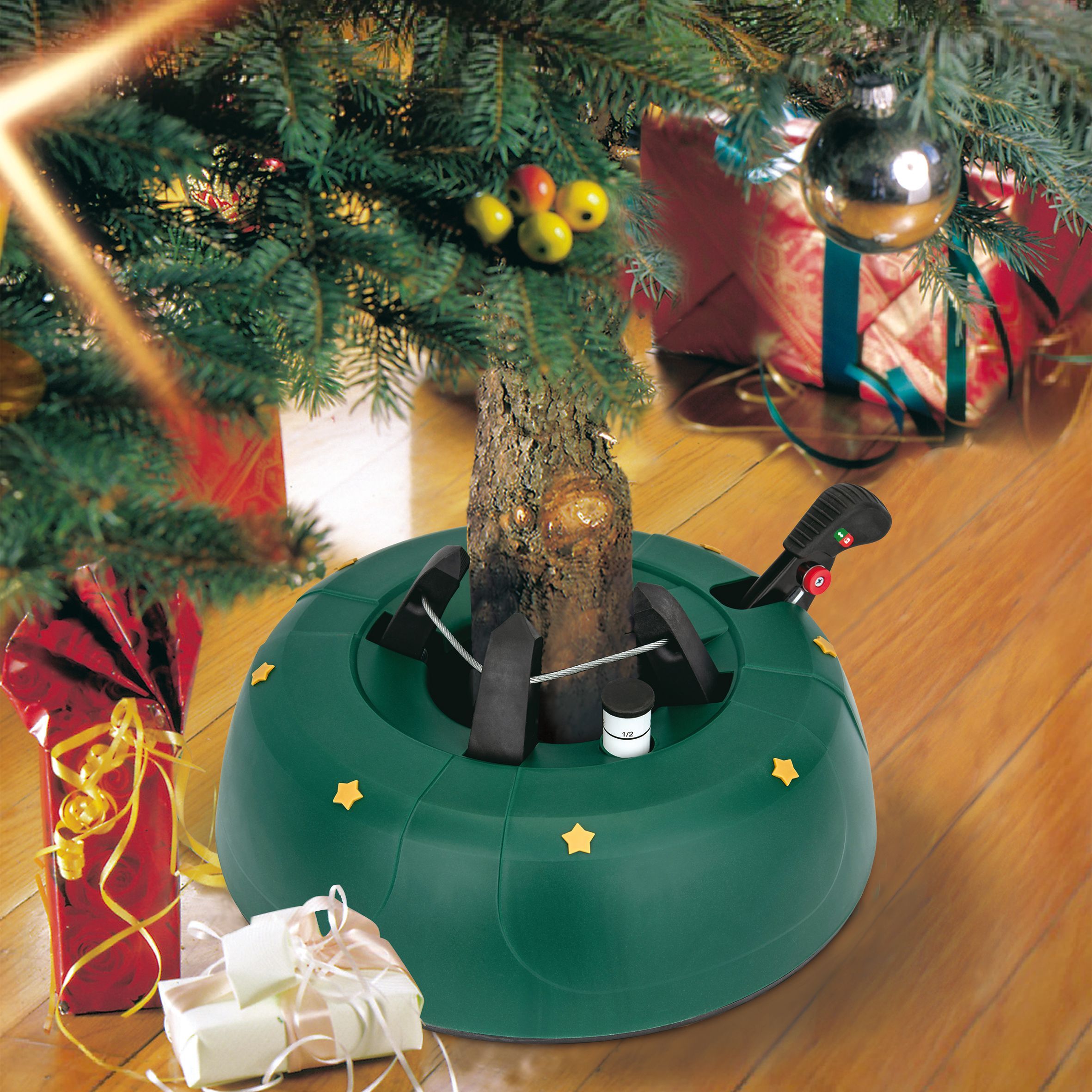 Ständer für Tannenbaum rund grün ca. 32 cm Durchmesser mit Einseiltechnik, Fußhebel und integriertem Wassertank für Bäume bis 2 m Höhe
