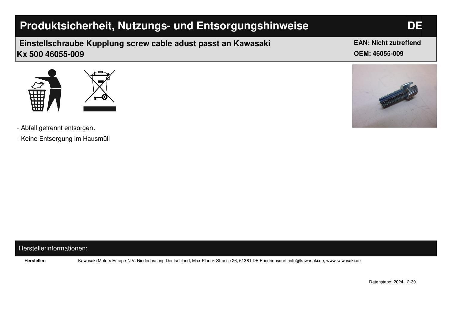 Einstellschraube Kupplung screw cable adust passt an Kawasaki Kx 500 46055-009 In dieser Auktion gibt es folgenden Artikel zu kaufen: Schraube (siehe Foto) Modell: passend für Kawasaki KX 500 Bj.: 87 - 89 Lieferumfang: 1 Stück Artikelzustand: neu aus Geschäftsauflösung, mit leichten Lagerspuren; Zus