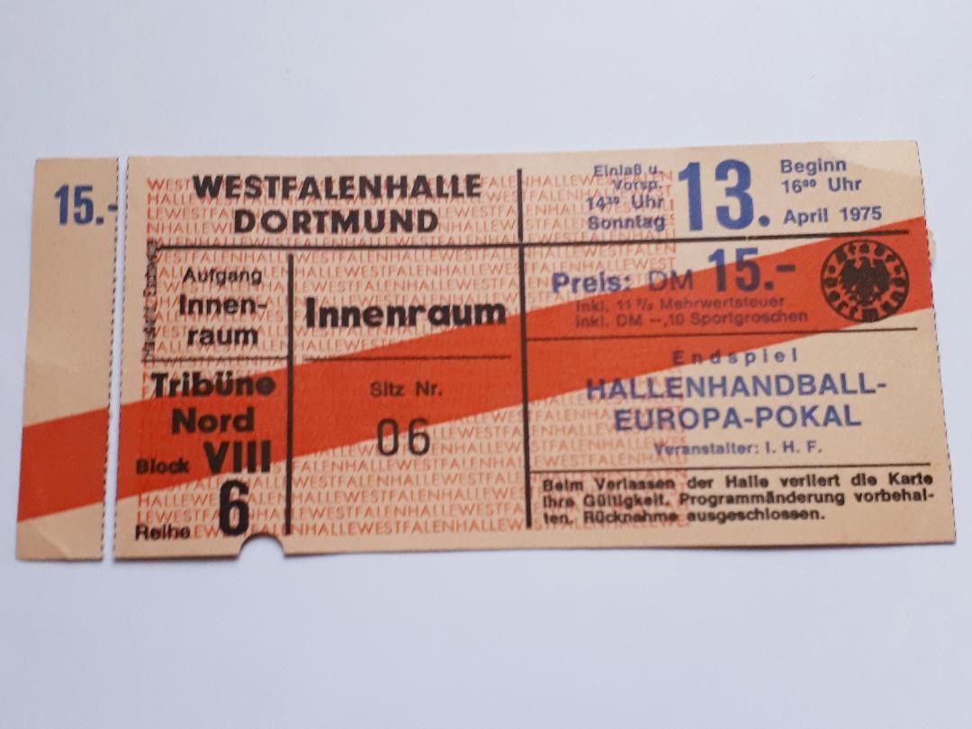 Eintrittskarte Endspiel Hallenhandball Europapokal 1975 Dortmund