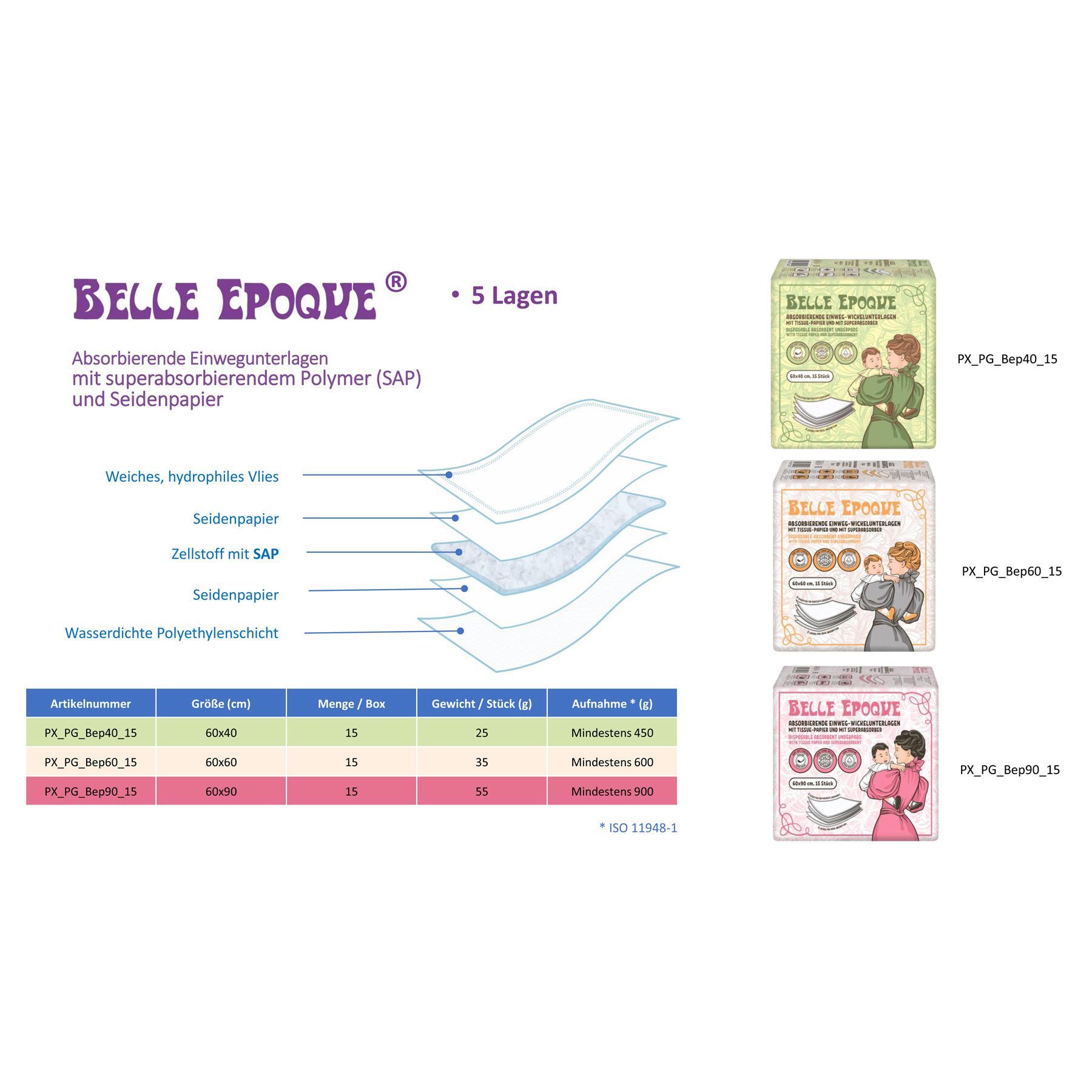 Einweg-Wickelunterlagen mit Tissue-Papier und einem Super-Absorber - Belle Epoque®
