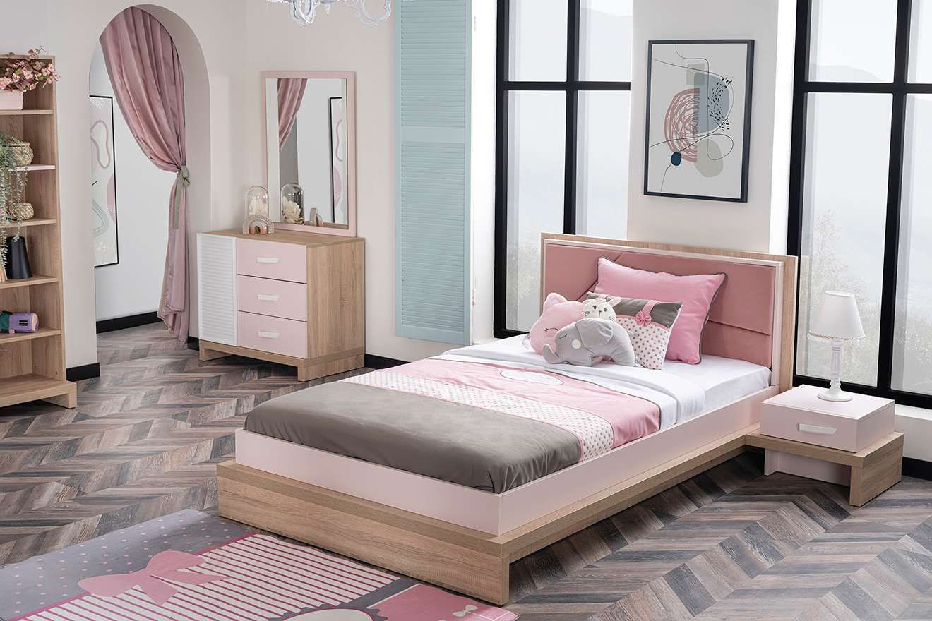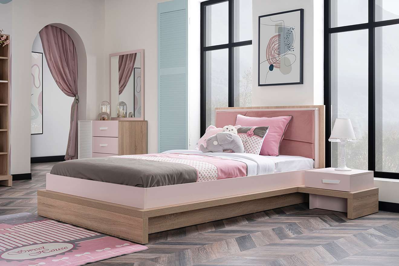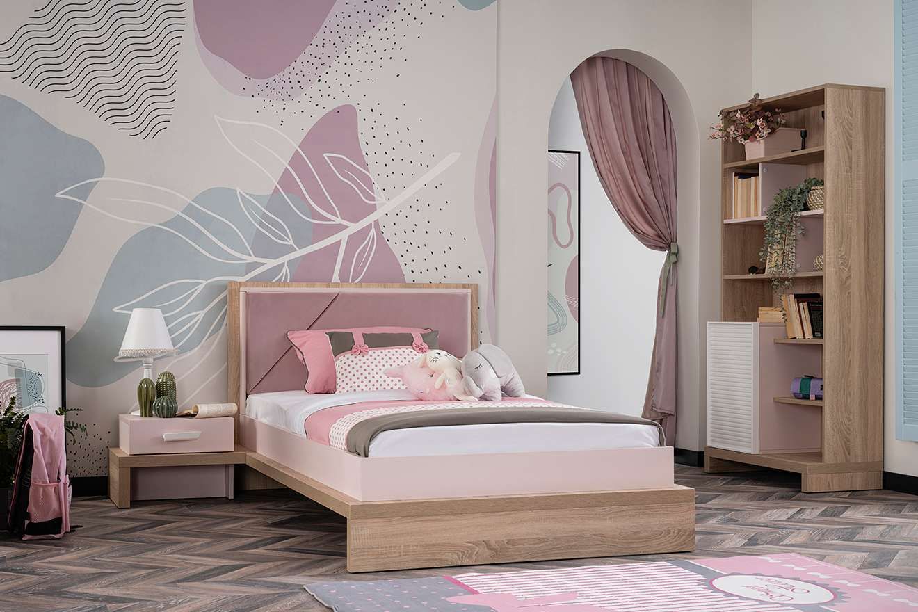 Einzelbett Angel 120 x 200 cm in Holzoptik/Pink
