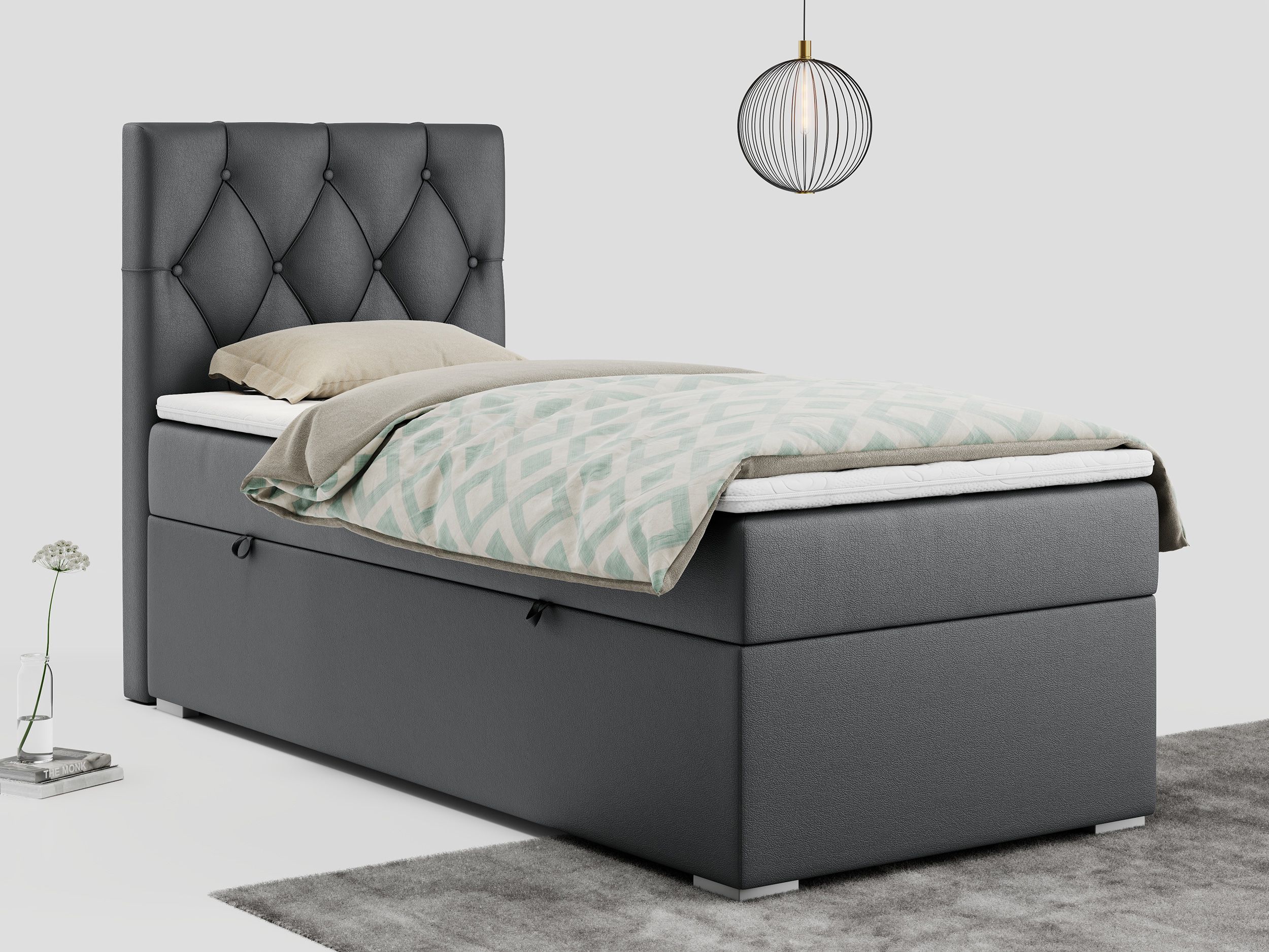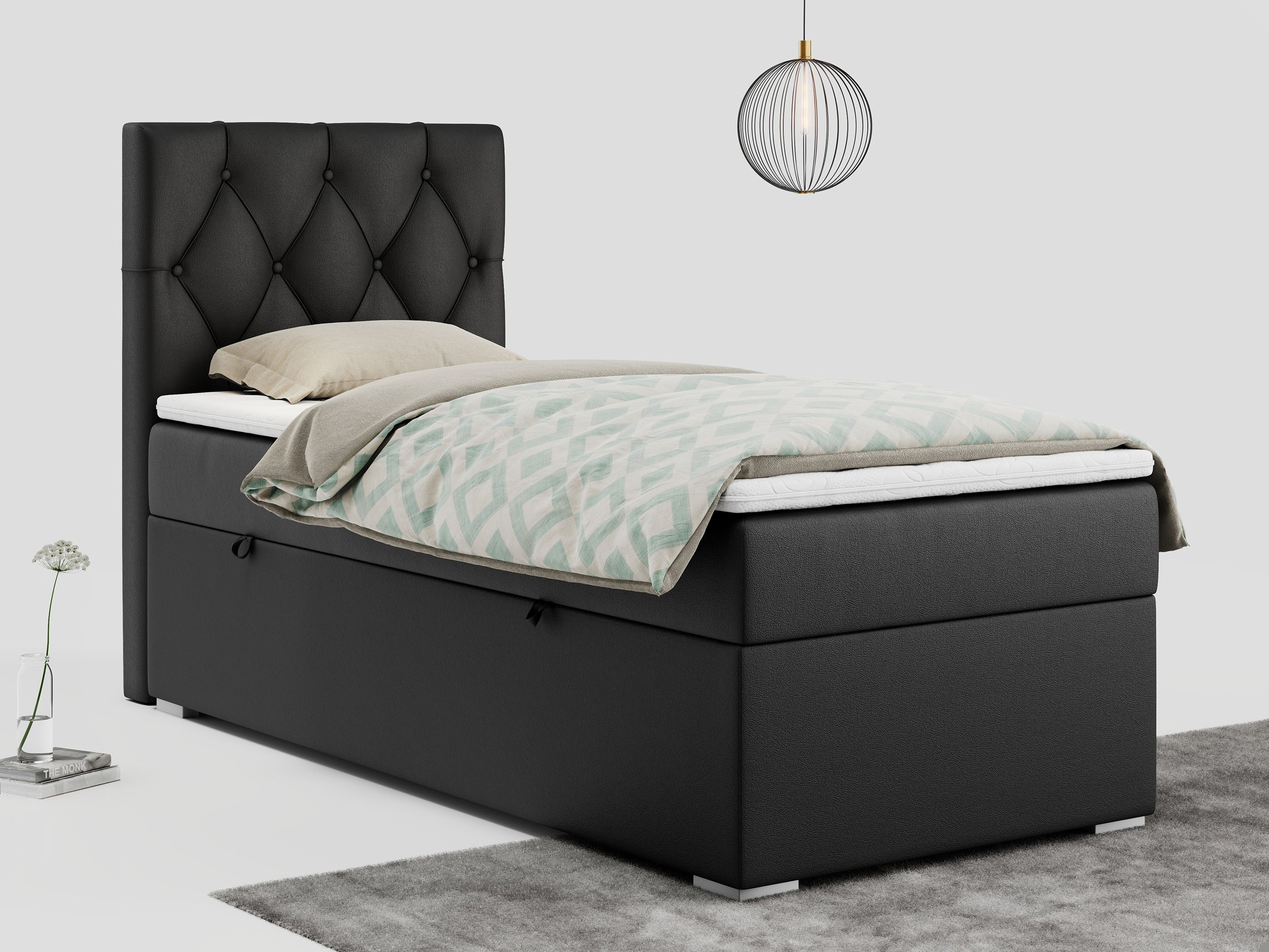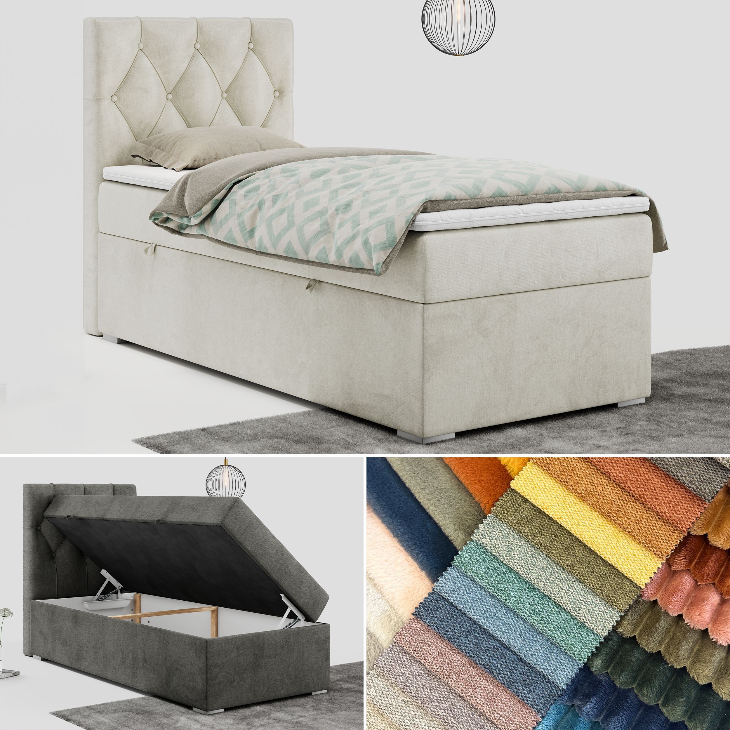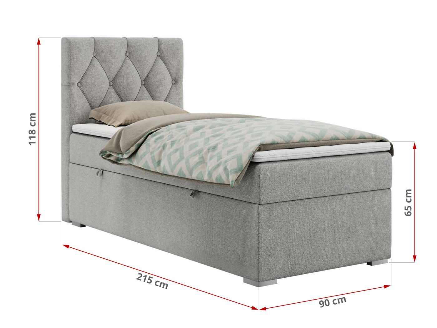 Einzelbett, Boxspringbett 90x200 cm mit Multipocket-Matratze, Jugendbett ALDA