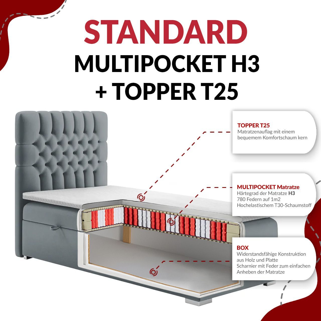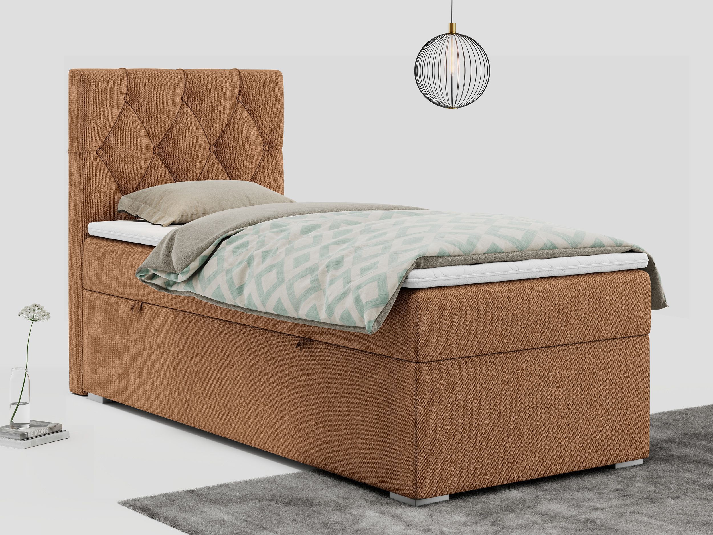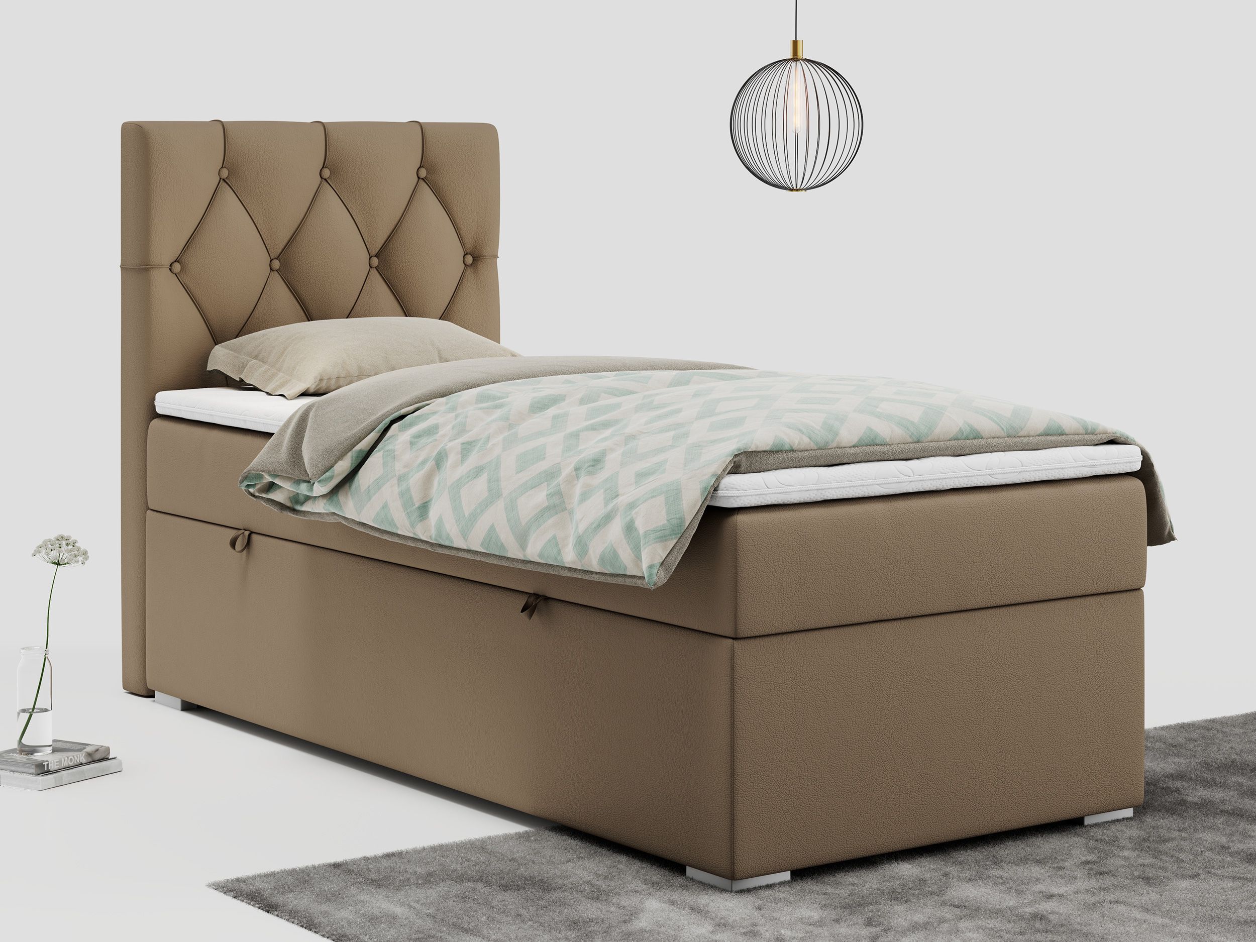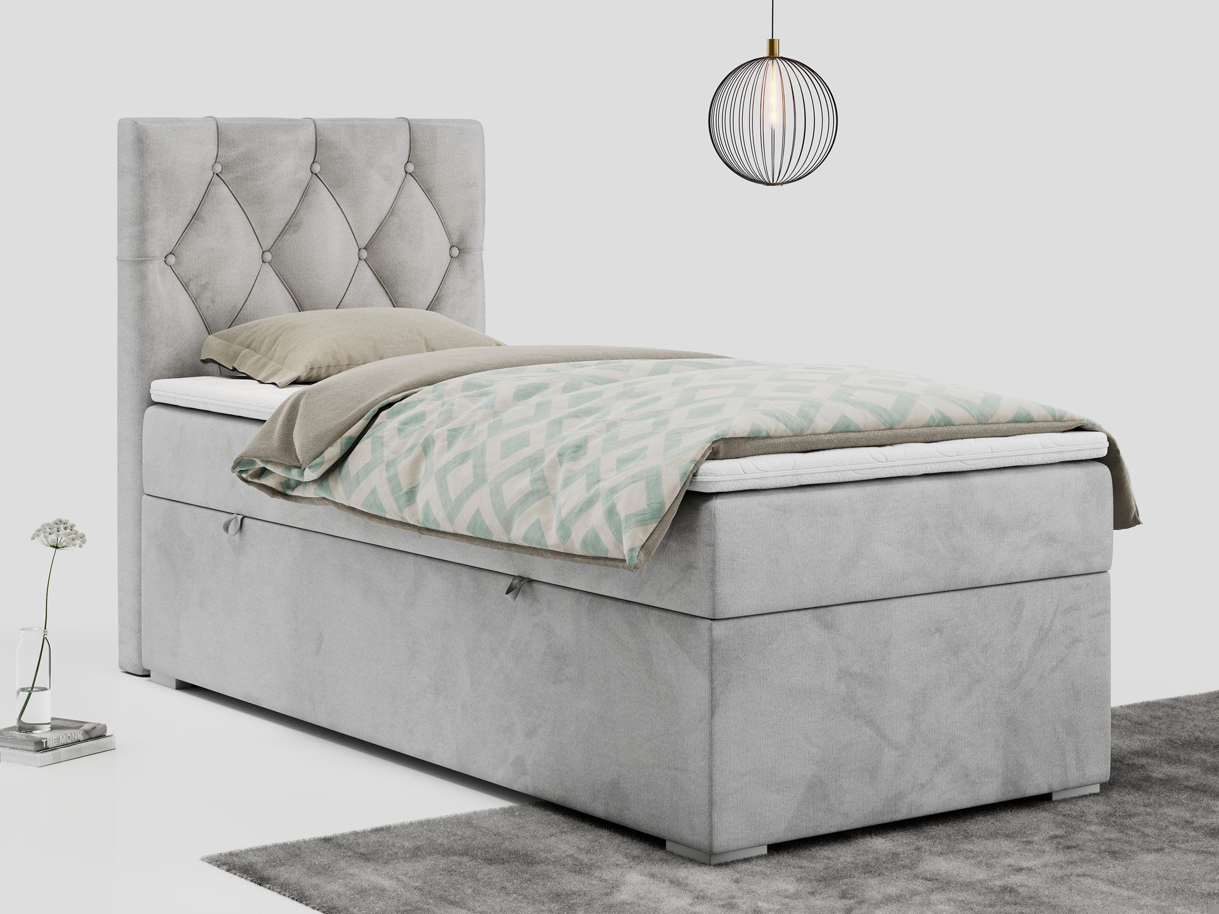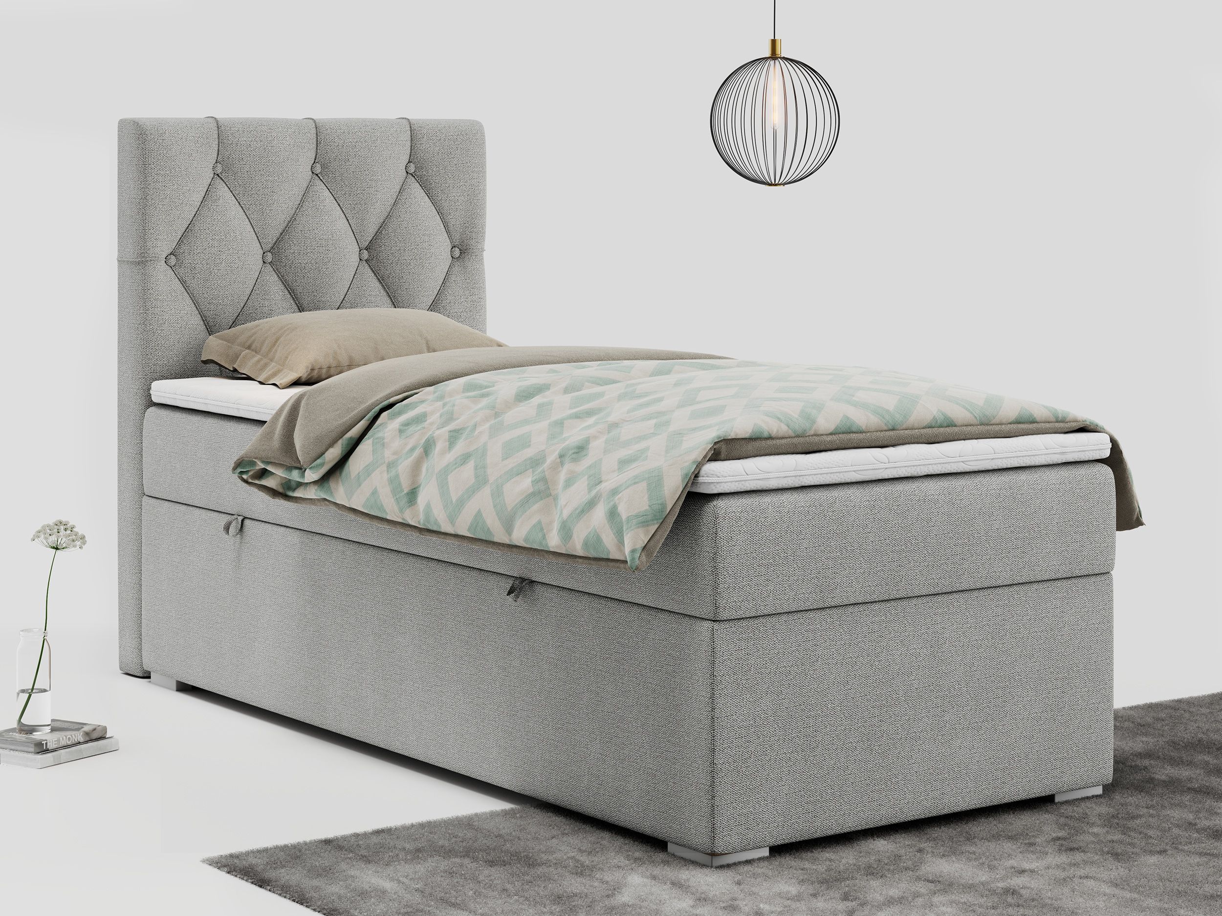 Einzelbett, Boxspringbett 90x200 cm mit Multipocket-Matratze, Jugendbett ALDA